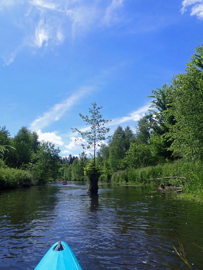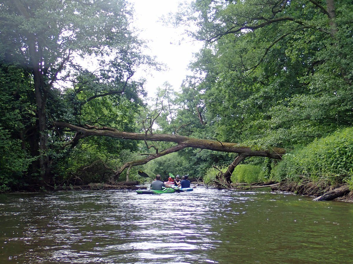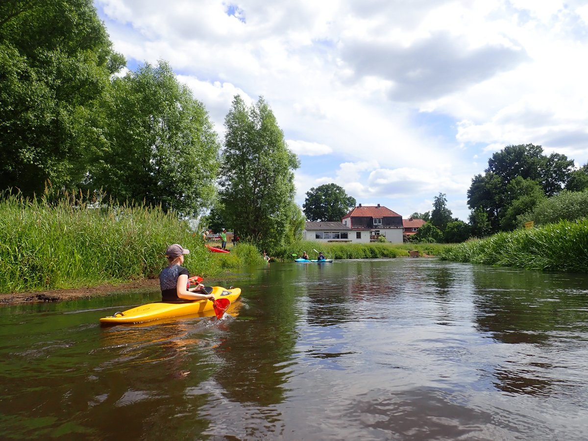 Eigentlich wollten wir mal wieder die Kurvenörtze paddeln. So nennen wir den stark mäandrierenden Abschnitt zwischen Wolthausen und der Aller-Mündung. Diese Tour startet üblicherweise in Eversen. Dort angekommen, zeigte sich der Pegel rot - die Tour würde hier nicht starten dürfen, aber beendet werden müssen. Und so taten wir es dann spontan: Wir starteten in Müden (knapp grün) und paddelten bis Eversen.