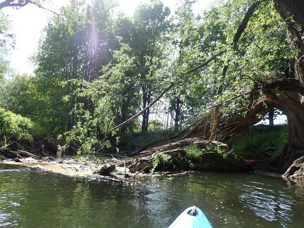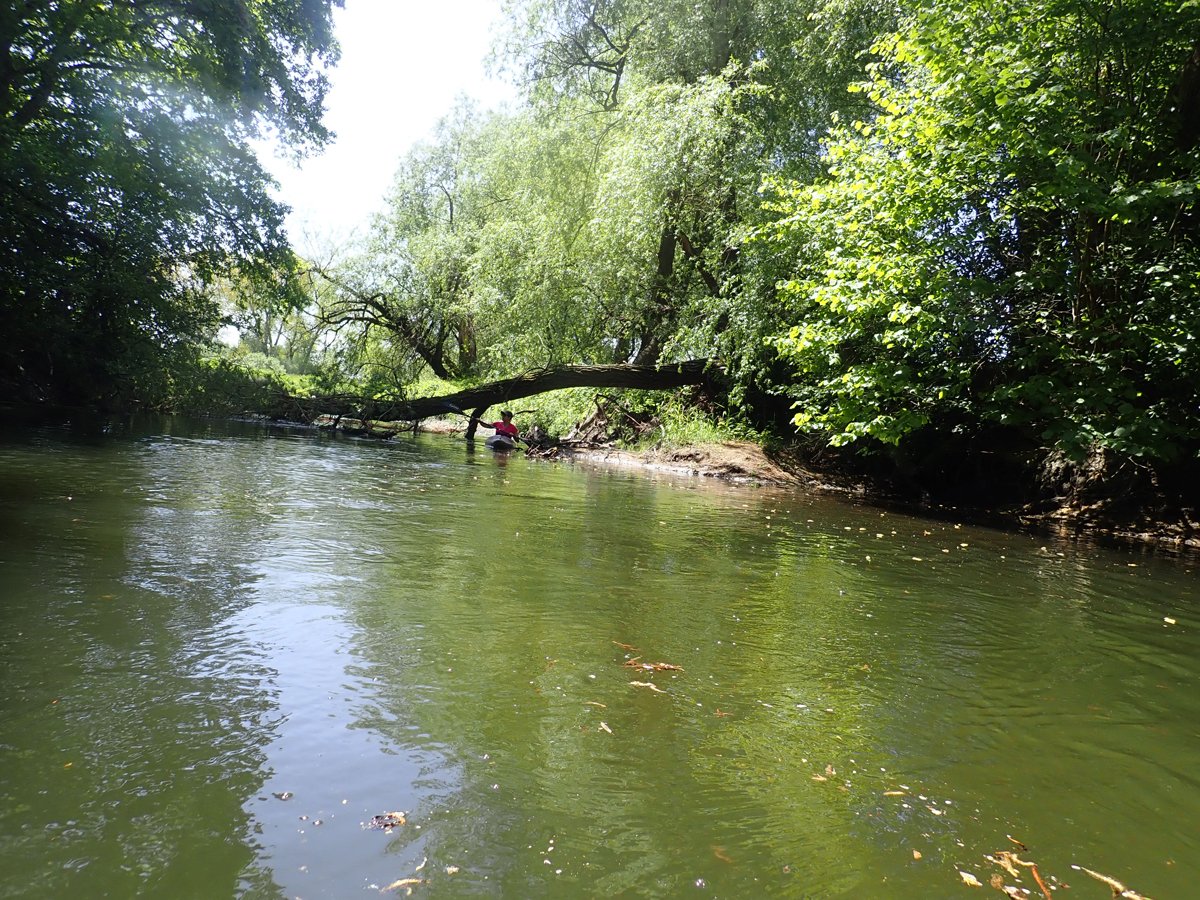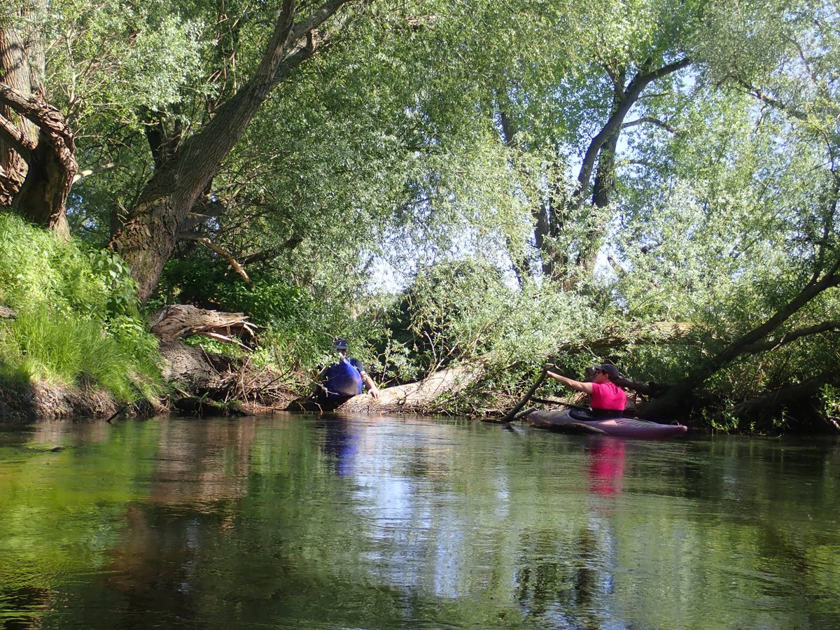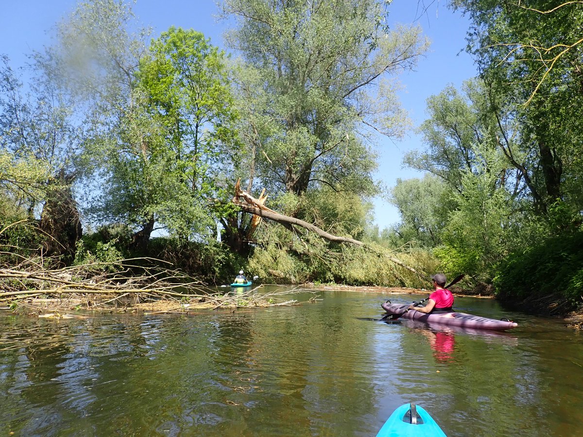 Start dieser Tour war am Südsee. Von dort ging es rechts herum durch Braunschweig - das Petriwehr im linken Arm ist immer noch Baustelle - bis nach Ölper. Nun wechselte das Bild der Oker von "Stadtkanal" zu "Wildnis". Auf einer Luftliniendistanz von etwas über 3 Kilometern hat die Oker eine Fließstrecke von 9 Kilometern zu absolvieren, durch herrlich viele Mäander mitten durch ein Waldstück. Hier lagen auch zahlreiche Baumhindernisse im Wasser. Sie galt es zu überwinden, mit allen nur denkbaren Techniken. Am Mittellandkanal endete dann die Tour.