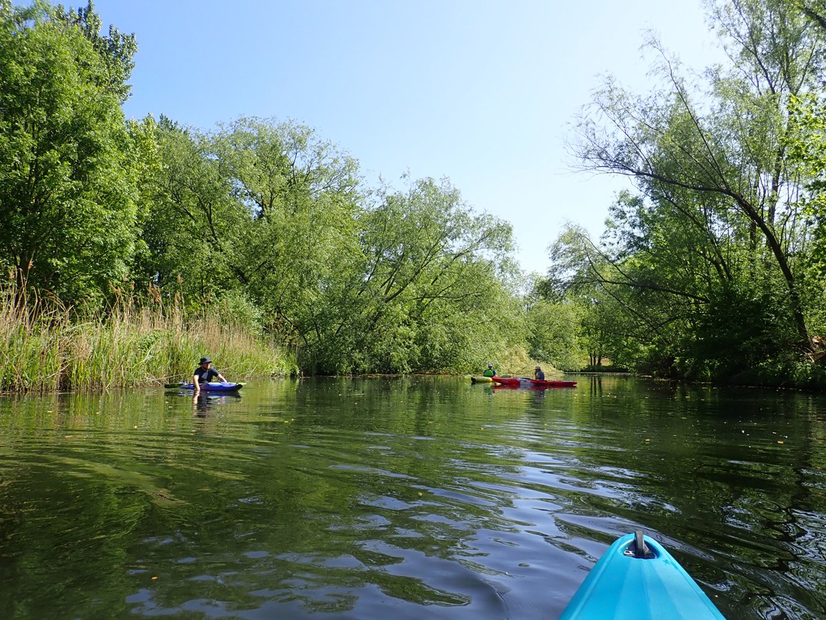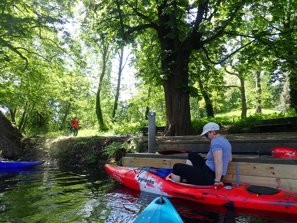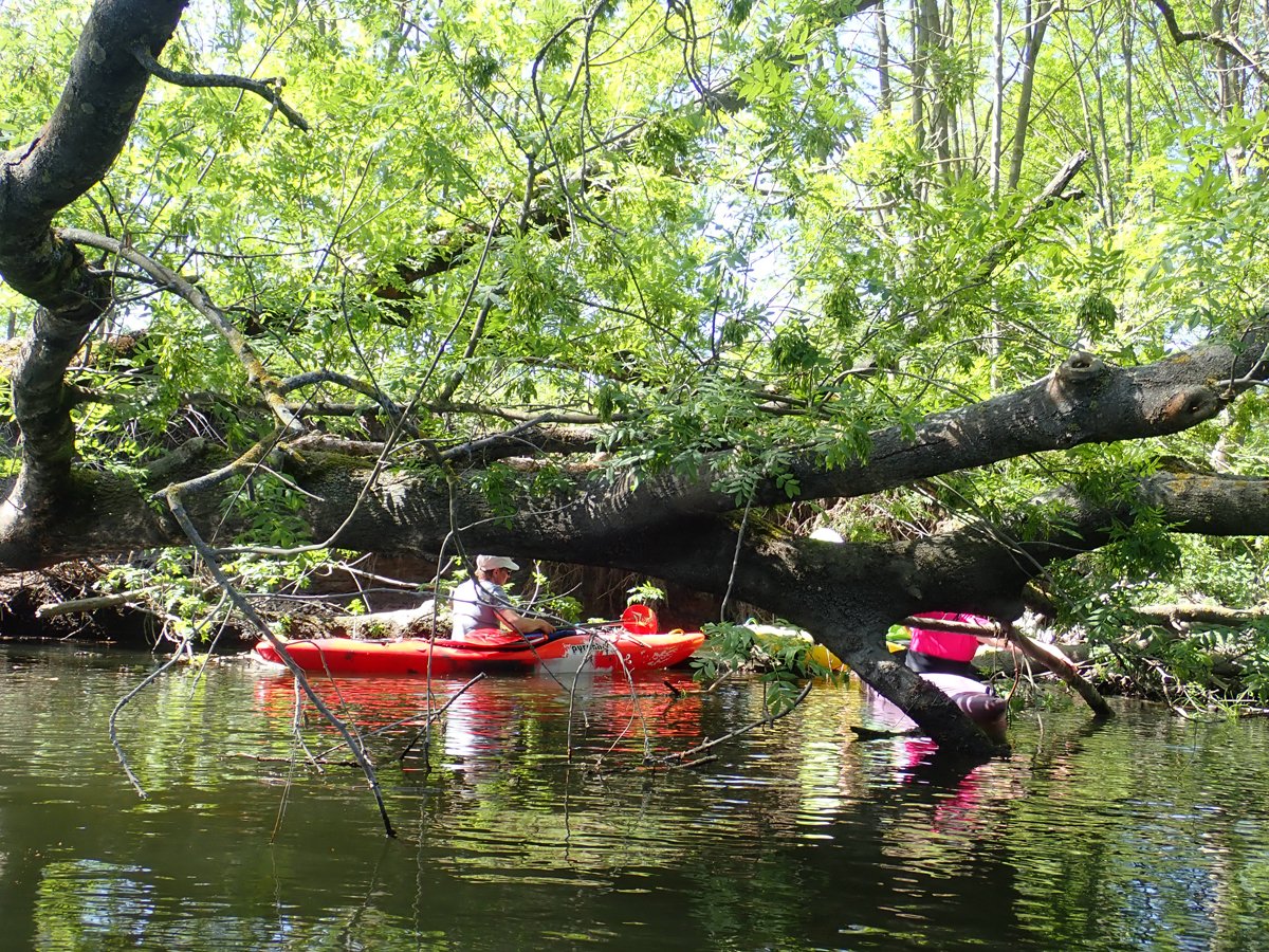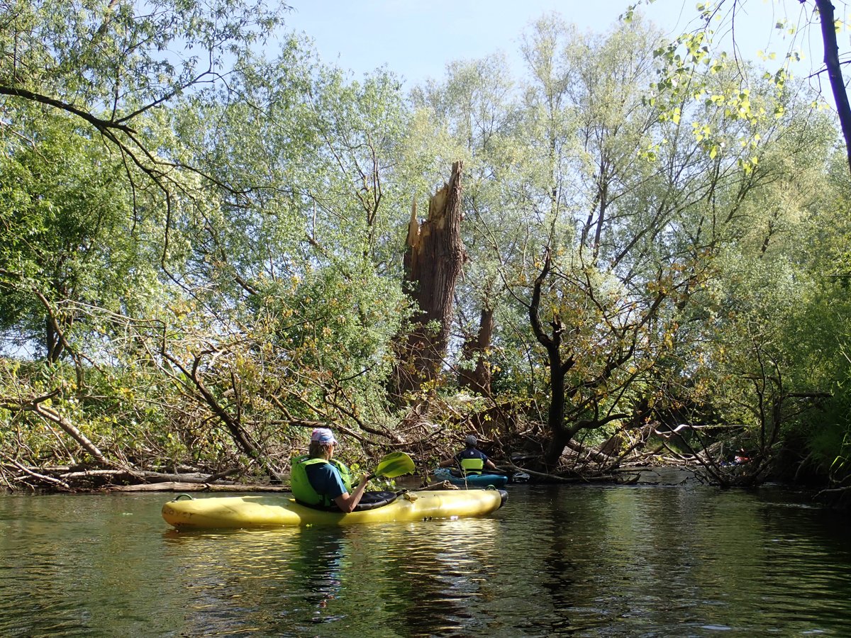 Start dieser Tour war am Südsee. Von dort ging es rechts herum durch Braunschweig - das Petriwehr im linken Arm ist immer noch Baustelle - bis nach Ölper. Nun wechselte das Bild der Oker von "Stadtkanal" zu "Wildnis". Auf einer Luftliniendistanz von etwas über 3 Kilometern hat die Oker eine Fließstrecke von 9 Kilometern zu absolvieren, durch herrlich viele Mäander mitten durch ein Waldstück. Hier lagen auch zahlreiche Baumhindernisse im Wasser. Sie galt es zu überwinden, mit allen nur denkbaren Techniken. Am Mittellandkanal endete dann die Tour.