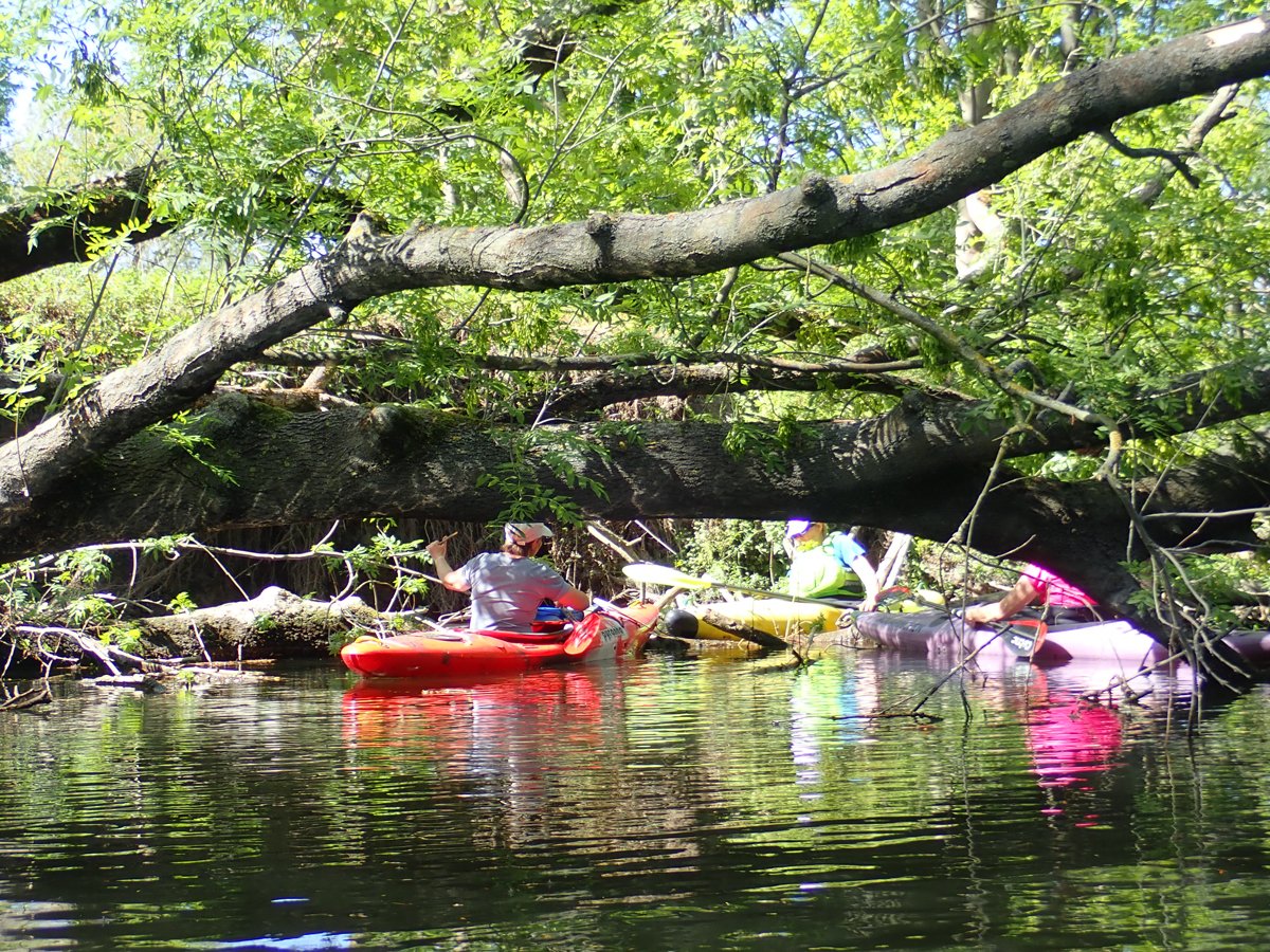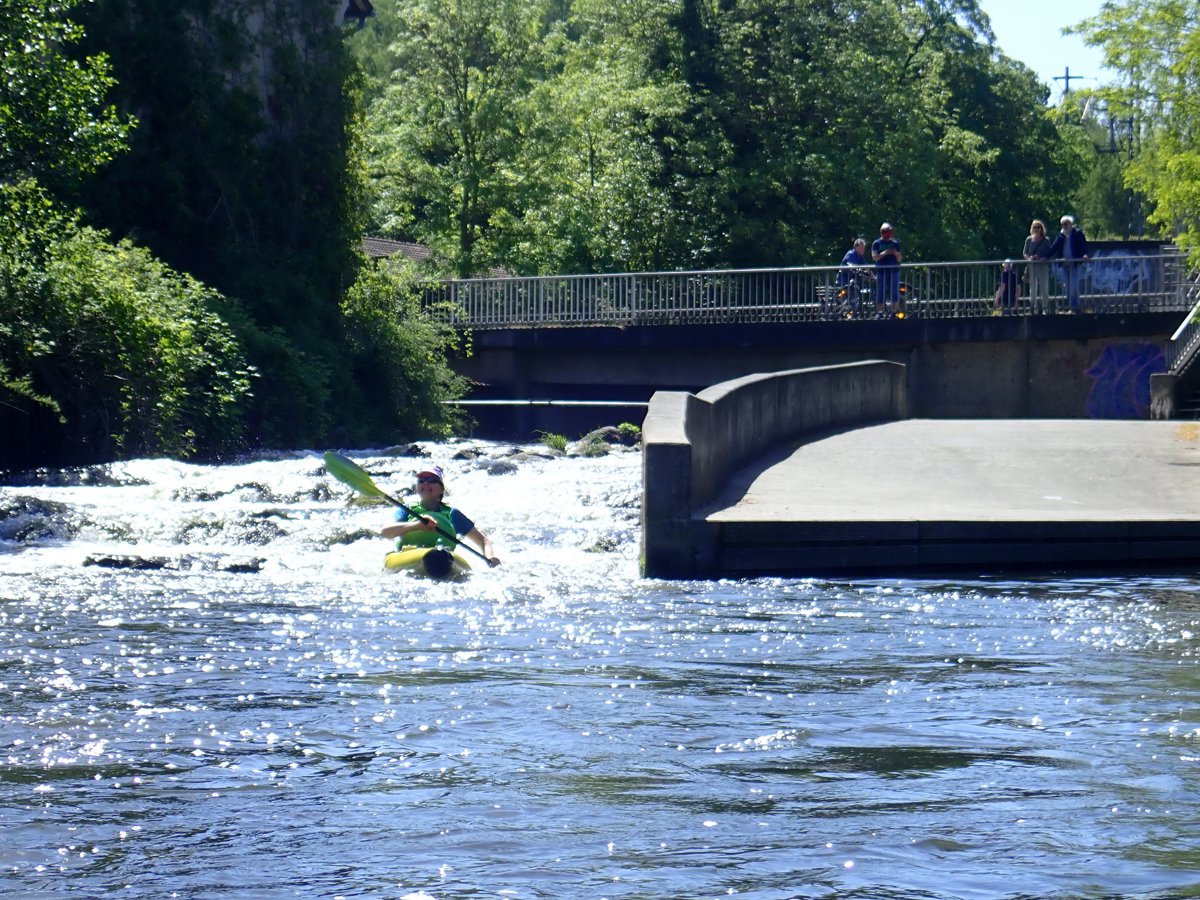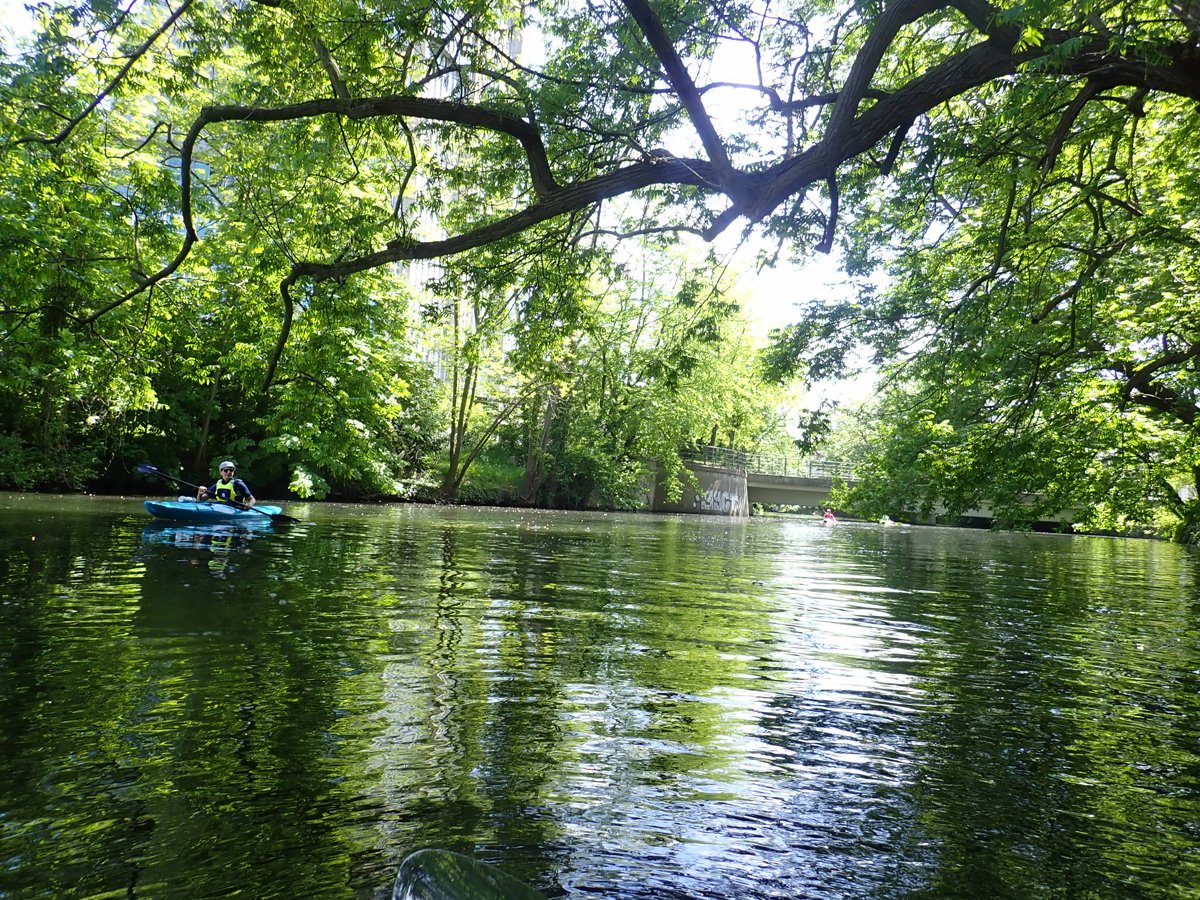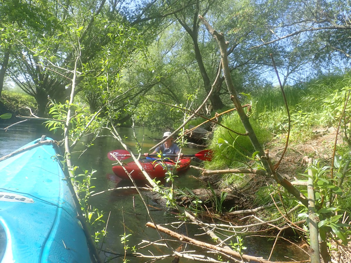 Start dieser Tour war am Südsee. Von dort ging es rechts herum durch Braunschweig - das Petriwehr im linken Arm ist immer noch Baustelle - bis nach Ölper. Nun wechselte das Bild der Oker von "Stadtkanal" zu "Wildnis". Auf einer Luftliniendistanz von etwas über 3 Kilometern hat die Oker eine Fließstrecke von 9 Kilometern zu absolvieren, durch herrlich viele Mäander mitten durch ein Waldstück. Hier lagen auch zahlreiche Baumhindernisse im Wasser. Sie galt es zu überwinden, mit allen nur denkbaren Techniken. Am Mittellandkanal endete dann die Tour.