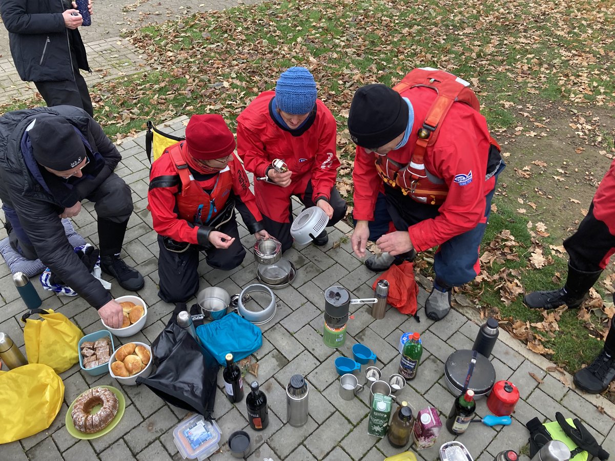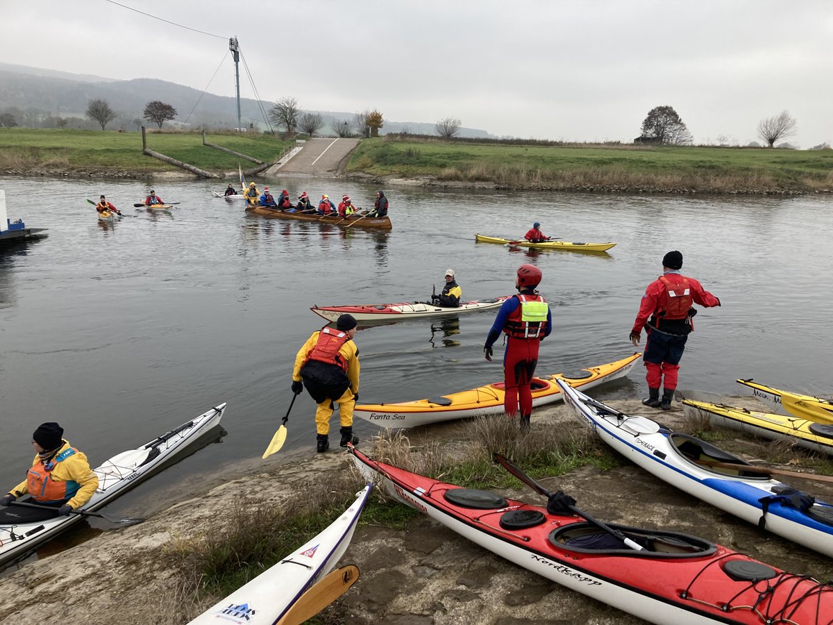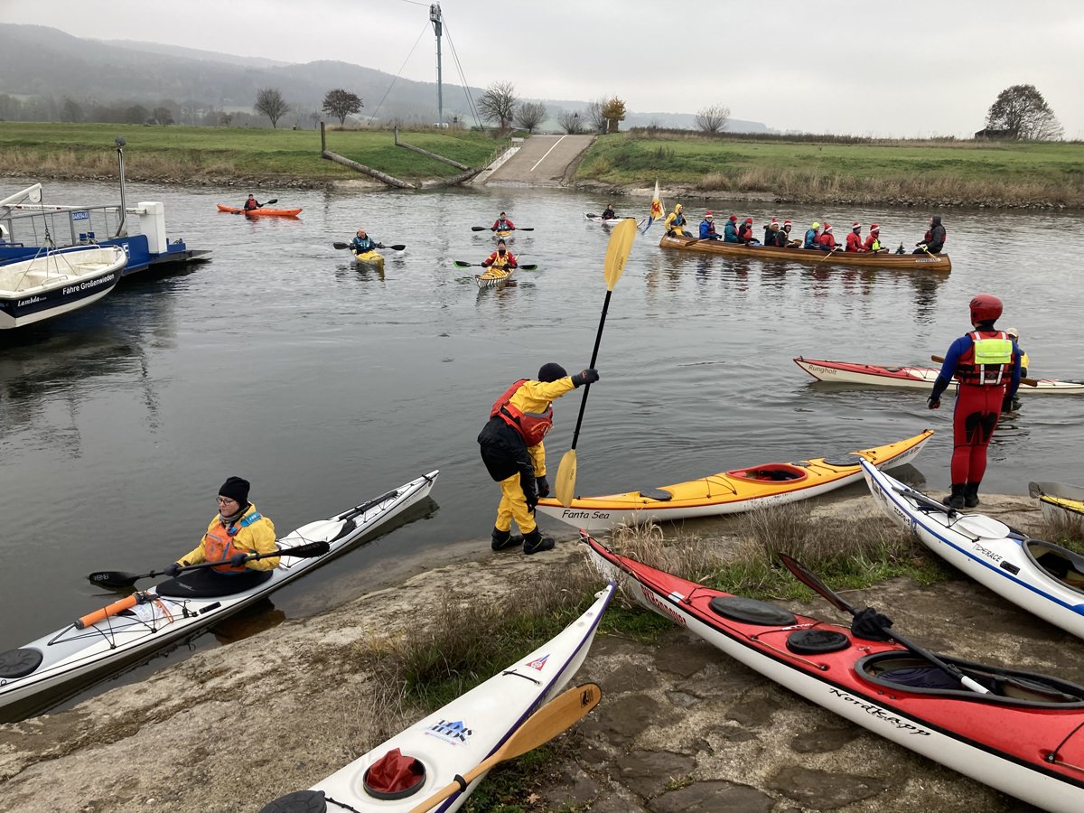 Die Rintelner Eisfahrt auf der Weser von Hameln nach Rinteln ist ein Klassiker im DKV-Sportprogramm. 2020 und 2021 musste sie corona-bedingt ausfallen, in 2022 fand sie wieder im kleineren Rahmen statt. Wir waren natürlich mit dabei. Da es die Glühweinbude an der Fähre Großenwieden dieses Jahr nicht gab, kümmerten wir uns gut vorbereitet selbst darum.