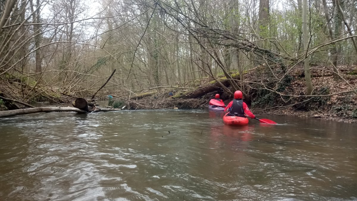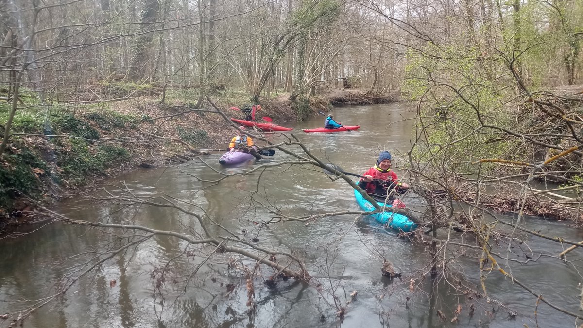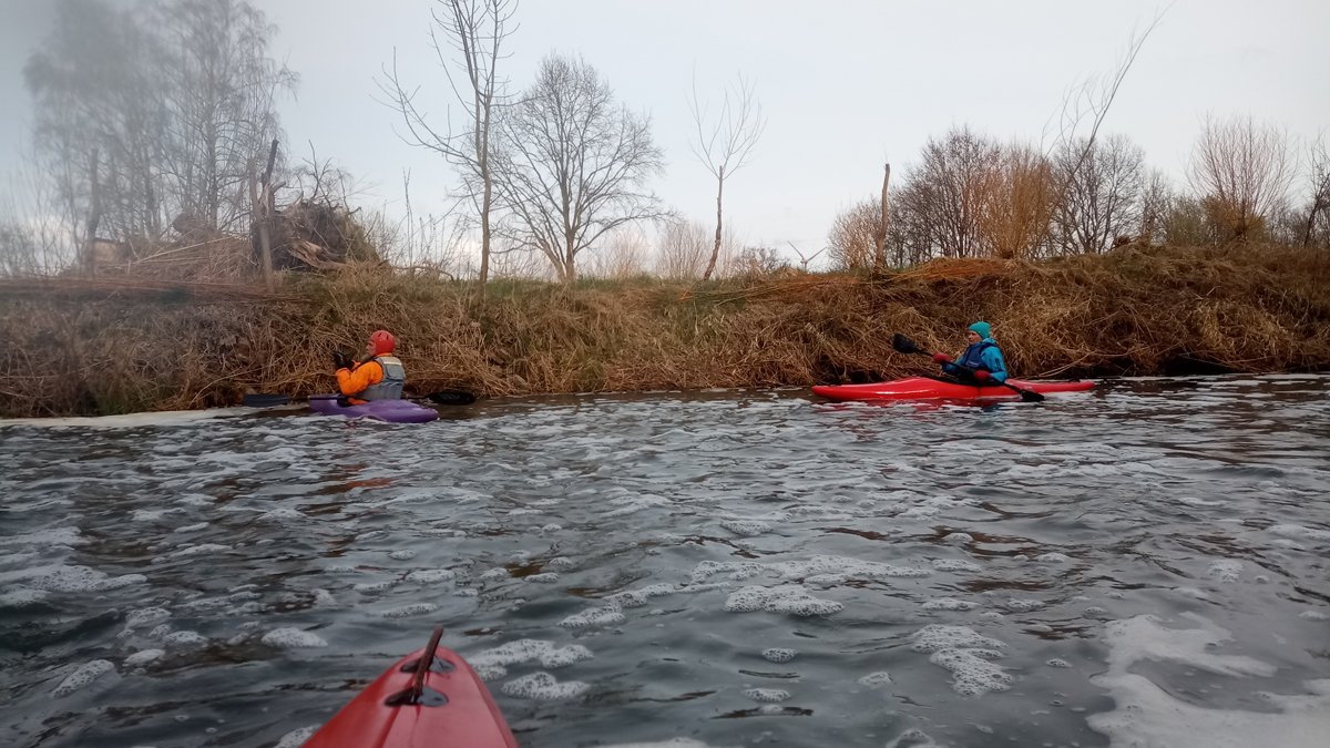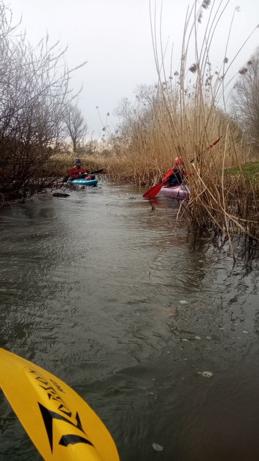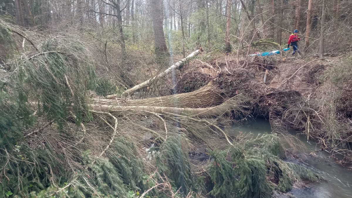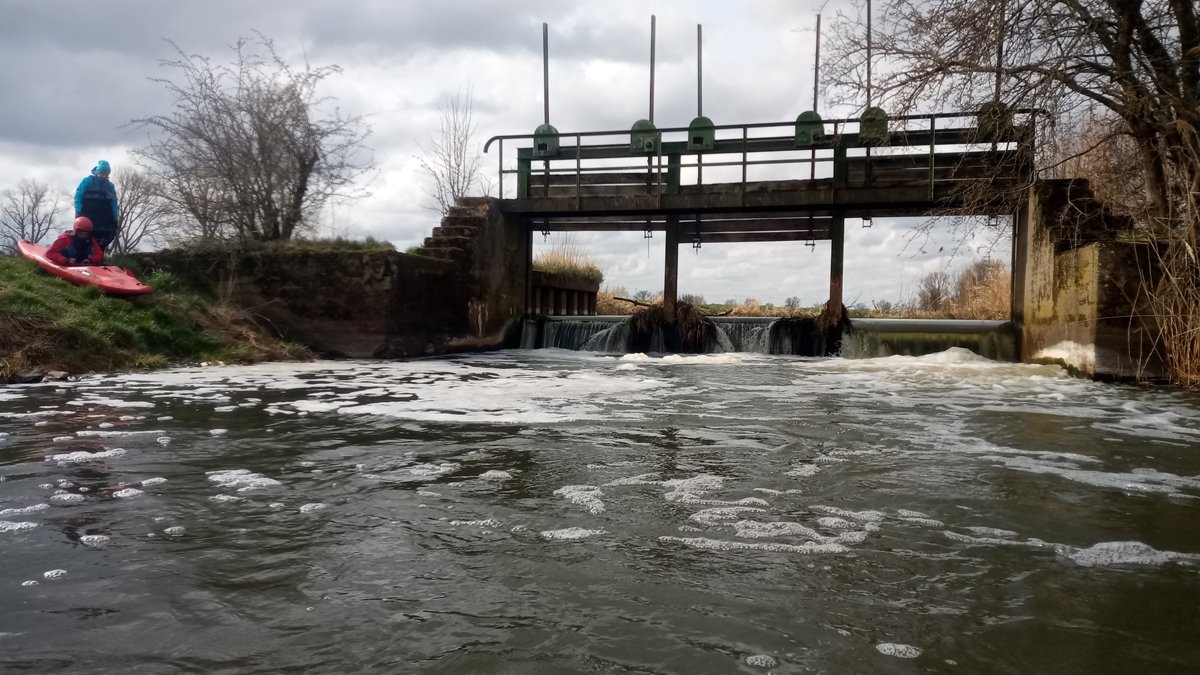 Auf zur nächsten Kleinflussfahrt: Auf der Fuhse von Dollbergen nach Wathlingen-Bröckel, 19 Kilometer. War es im März schon mal 17 Grad warm, kam hier der Winter wieder. Aber das erschreckt Paddler bekanntlich nicht. Die Winterstürme haben für ein umfassendes Mikado-Szenario im Wald nach Uetze gesorgt, der Wasserstand war auch anders als sonst - das Wiesenwehr Wackerwinkel, das hier umtragen werden musste, hat sonst häufig ein einheitliches Niveau im Ober- und Unterwasser und ist frei fahrbar.
