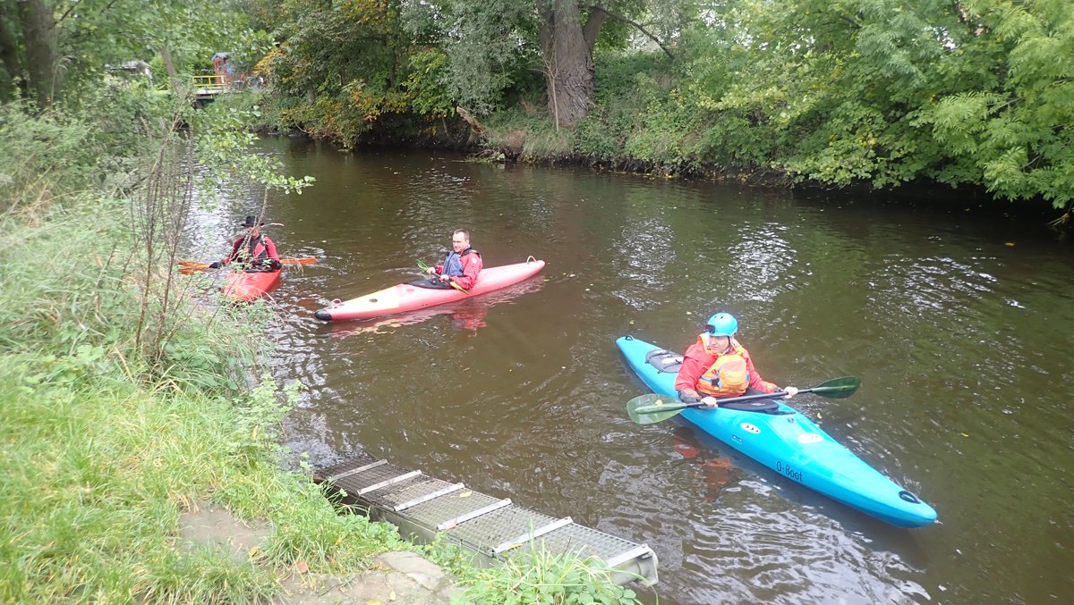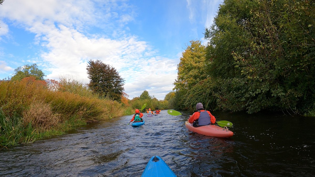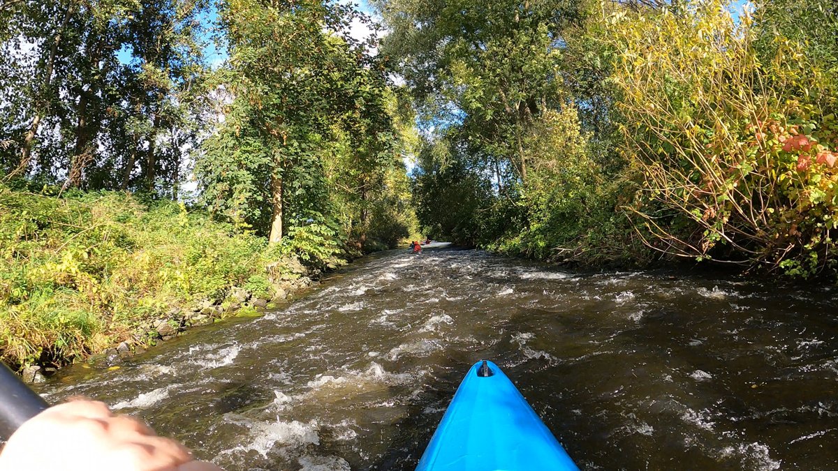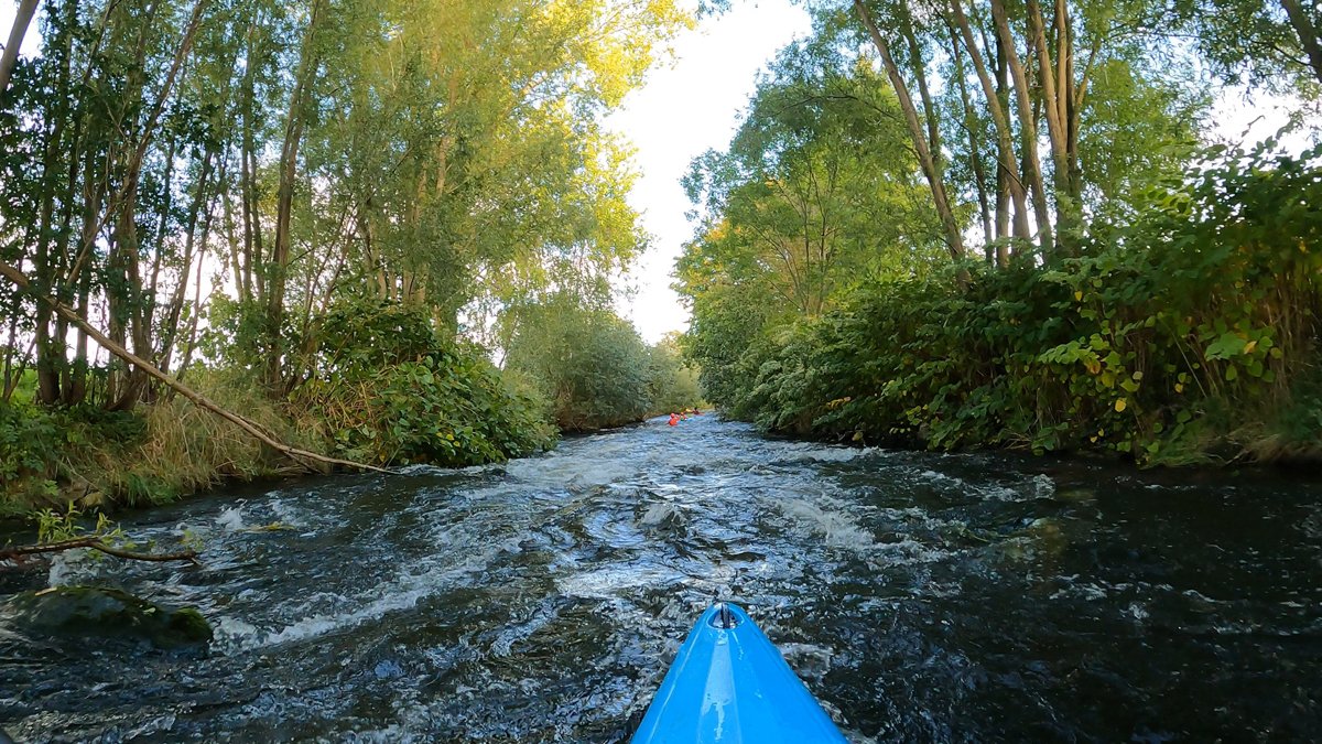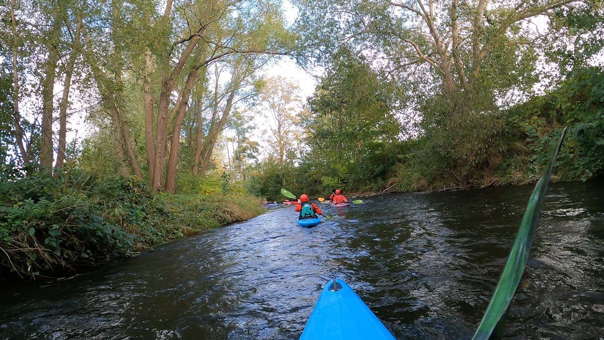 Die Oker ist ein sehr abwechselungsreicher Fluss. Im oberen Abschnitt ab Schladen (der frühesten Punkt, an dem der Fluss - mit Ausnahme der Wildwasserstrecke im Harz - befahren werden darf) ist er schnellfließend mit einigen netten Schwällen. Wenn der Pegel stimmt, macht die Fahrt hier richtig Spaß. Im Oktober 2023 hatten wir 80cm am Pegel Schladen, das passte gerade so.