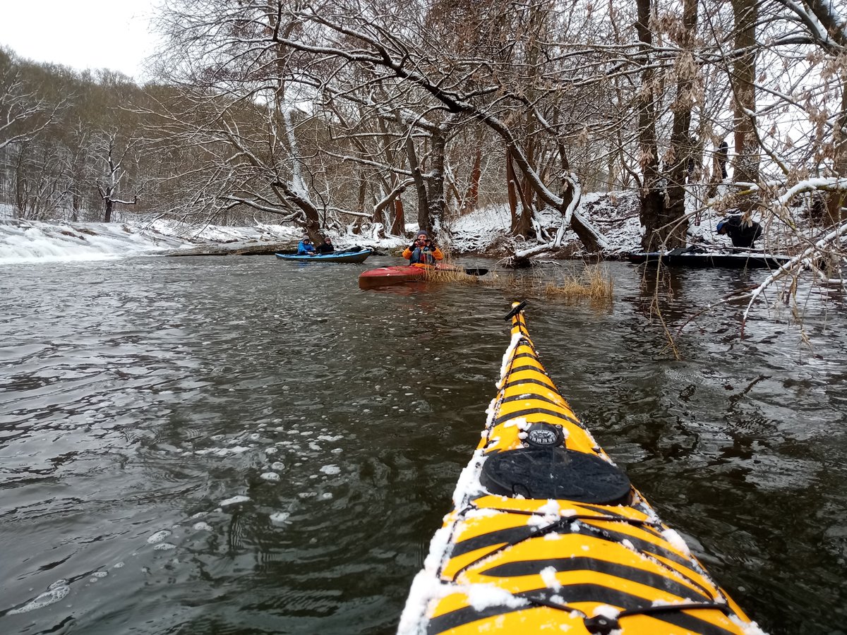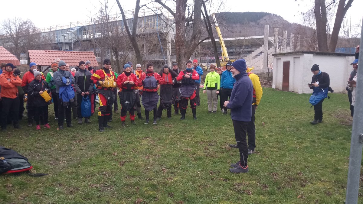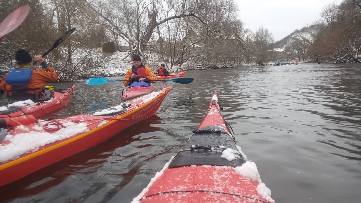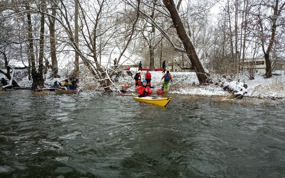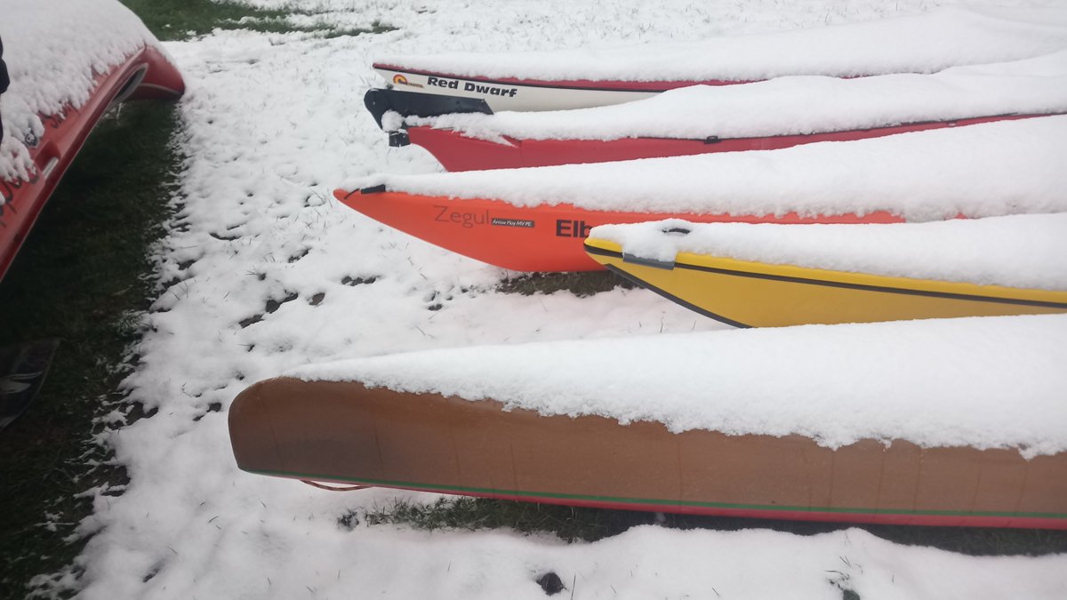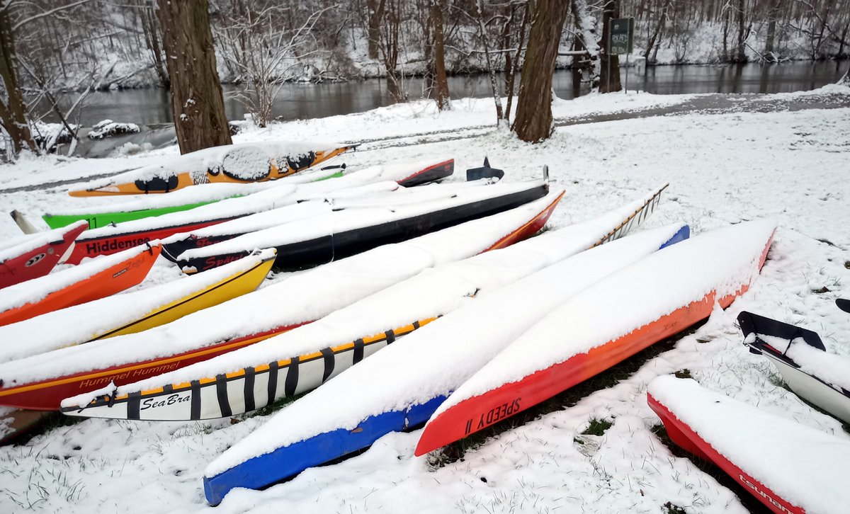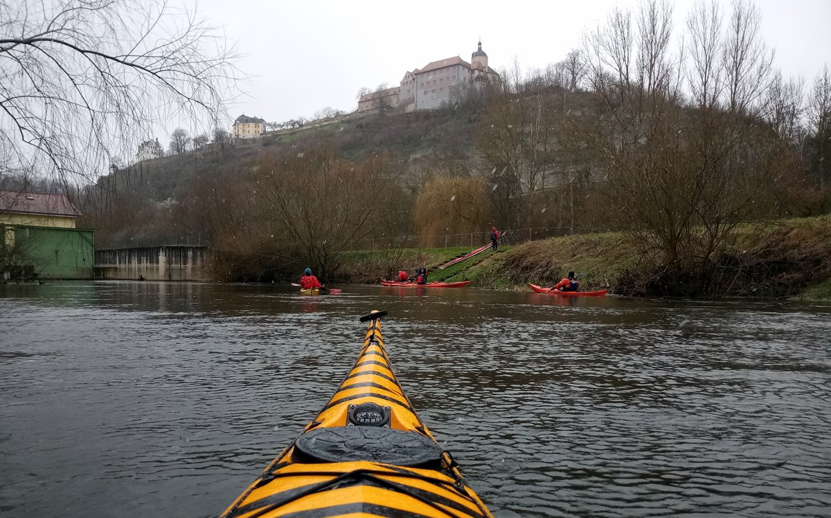 Die Winter-Saale-Fahrt gehört zu den großen winterlichen Gemeinschaftsfahrten. An zwei Tagen wird auf der Saale von Jena aus gepaddelt. Dieses Mal war es auch so richtig winterlich. In der Nacht hatte es ordentlich gescheint. Der eine oder Teilnehmer musste dann wohl auf die Suche des zugeschneiten Bootes gehen. Tagsüber lag die Temperatur um die 0°, so dass diese Winterfahrt auch bei winterlichen Bedingungen stattfinden konnte.
