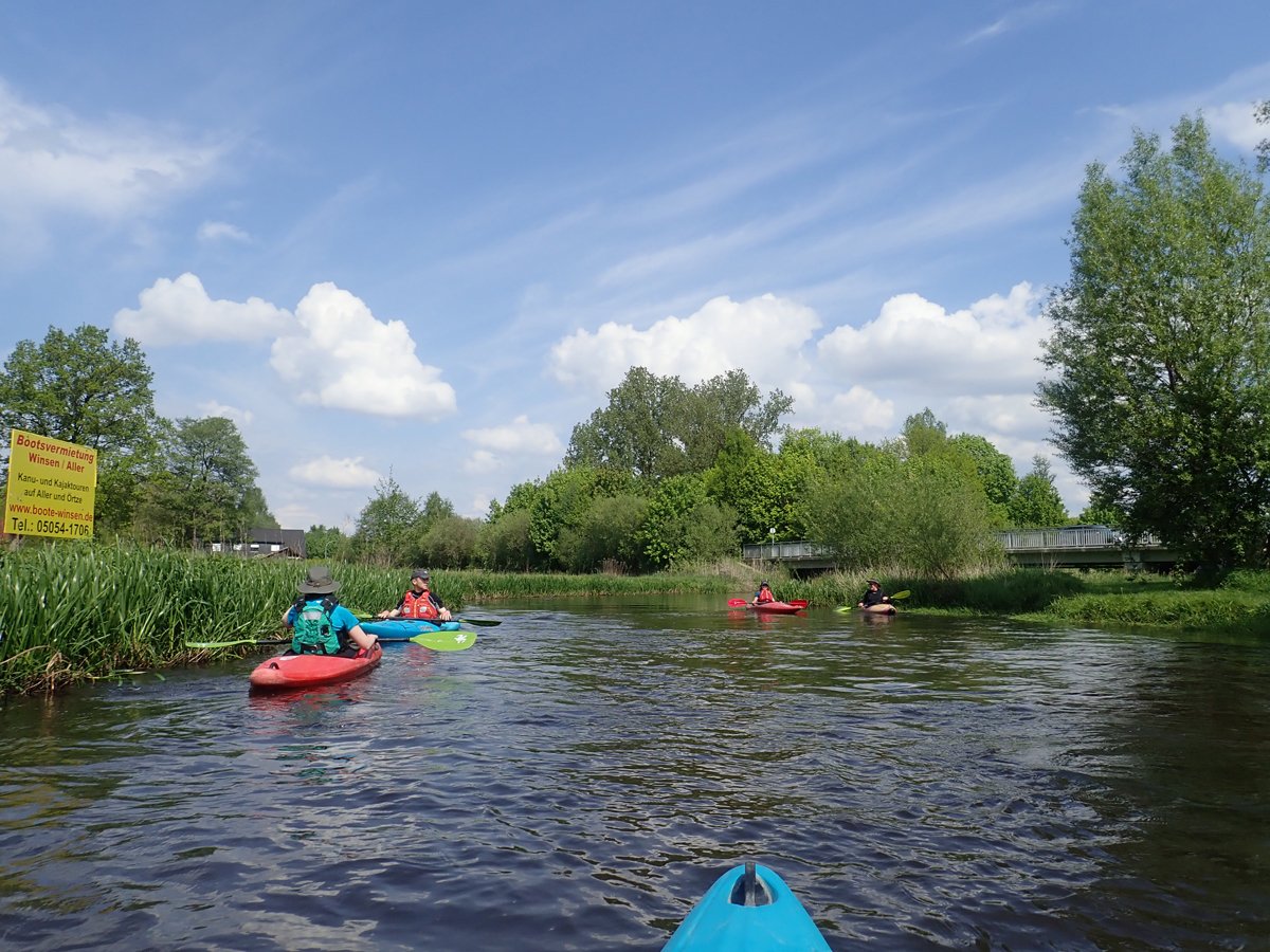 Ein großer Vorteil des gemeinsamen Paddeln im Verein ist es, dass wir teilweise Sonderregeln in Anspruch nehmen dürfen. Da wir uns konsequent fortbilden und Technik und Wissen nachweisen können, sich auch in besonders schützenswerten Naturräumen richtig zu verhalten, dürfen wir z.B. den Heidekleinfluss Örtze das ganze Jahr über paddeln, während die allgemeine Freigabe von Mitte Mai bis Oktober reicht. So machten wir eine Tour auf der Örtze, als diese nur für Vereinspaddler freigegeben war. Ohne das Gedränge zahlreiche Leihcanadier ein echtes Vergnügen.