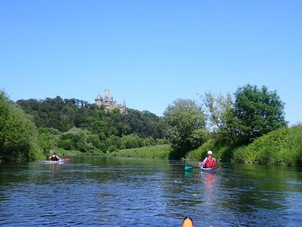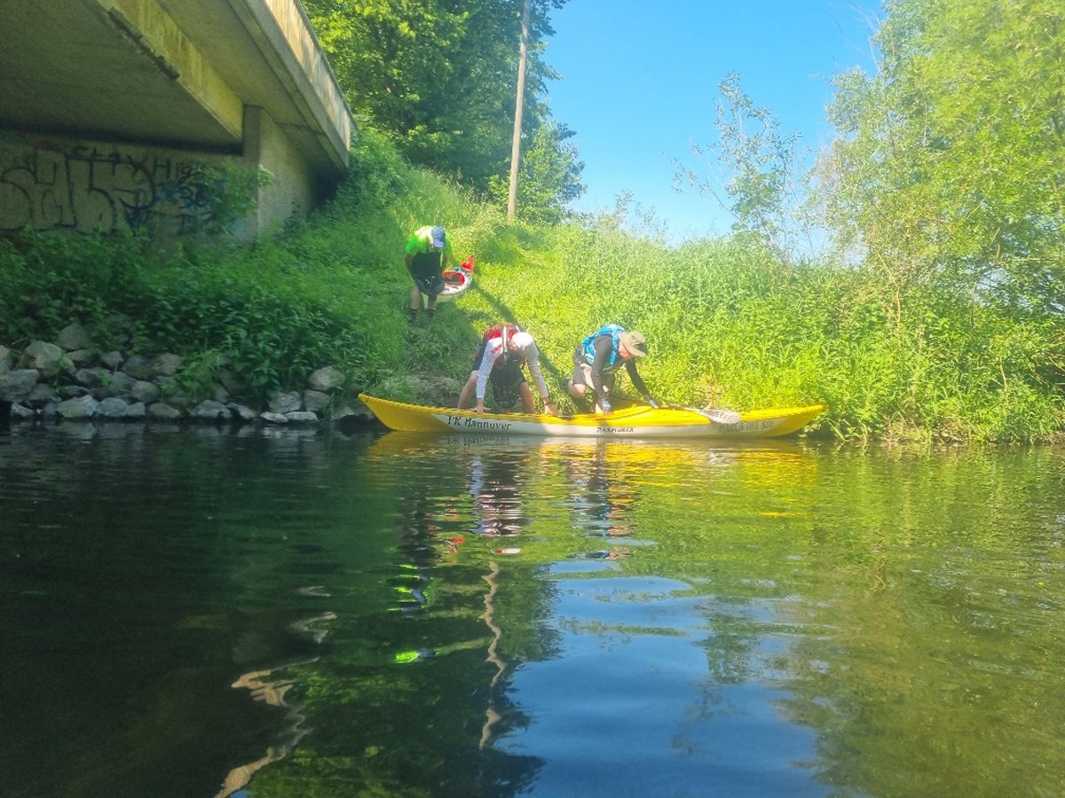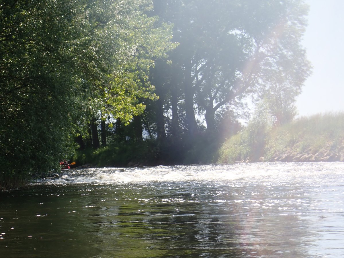 Eine Tagestour auf unserem Hausfluss, der Leine. Aber nicht direkt am Bootshaus, sondern südlich von Hannover. Die Strecke von Alfeld zur Marienburg sind wir schon häufig gepaddelt. Diesmal starteten wir erst in Brüggen. Dadurch konnten wir die beiden mühsamen Umtragestellen am Sohlabsturz in Limmer und am Wehr Brüggen umgehen. Es blieben nur noch Banteln und Gronau übrig.