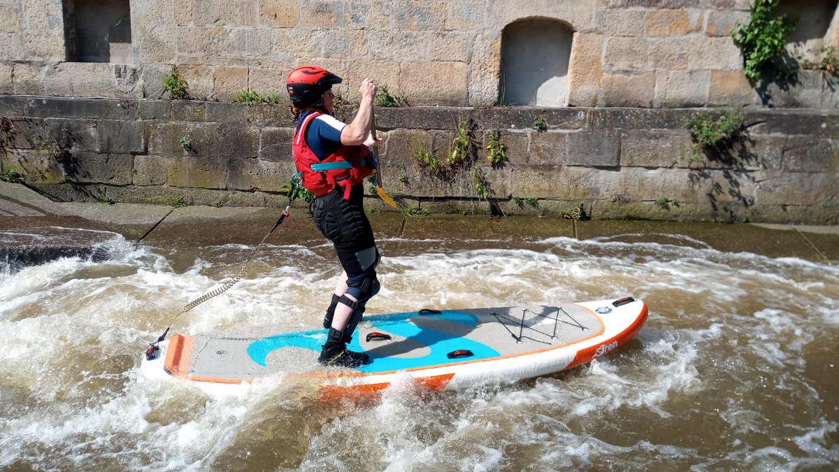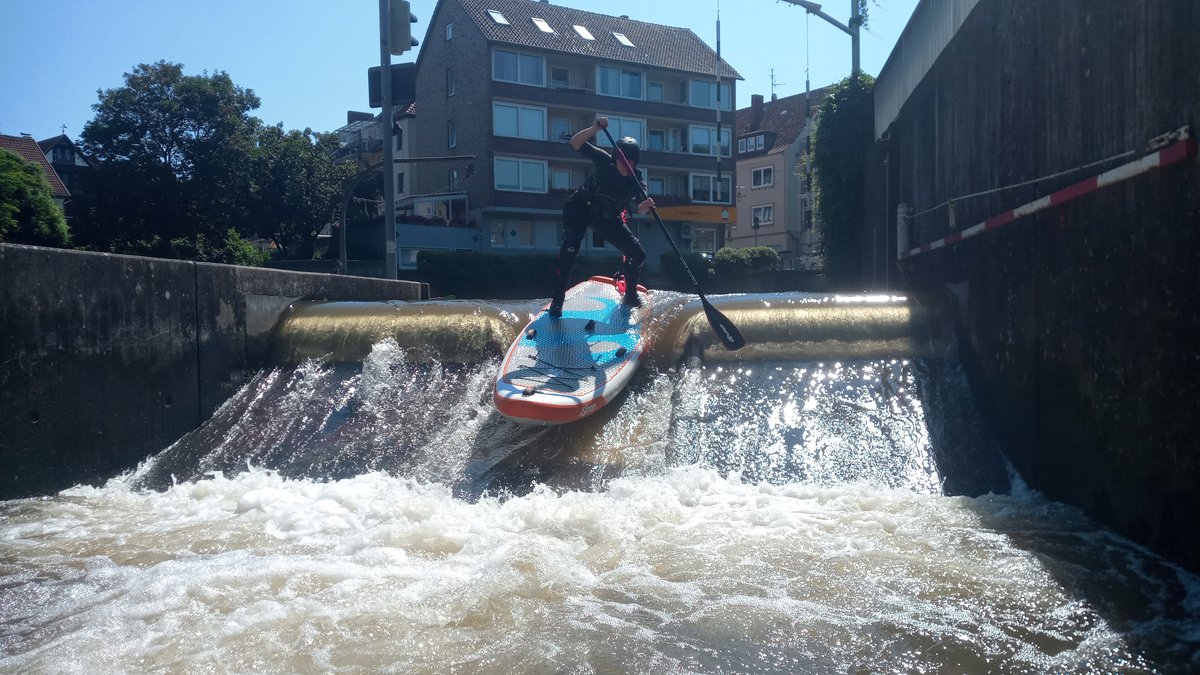 Stand-Up-Paddling (SUP) ist für die meisten von uns eine Sportart auf dem Zahmwasser, ideal auf der leine am PKH, oder auf dem See. Doch dass auch Wildwasser-SUP funktioniert, konnte so manch erfahrender Wildwasser-Kajaker während unseres Trainingswochenendes auf der BiMü sehen.