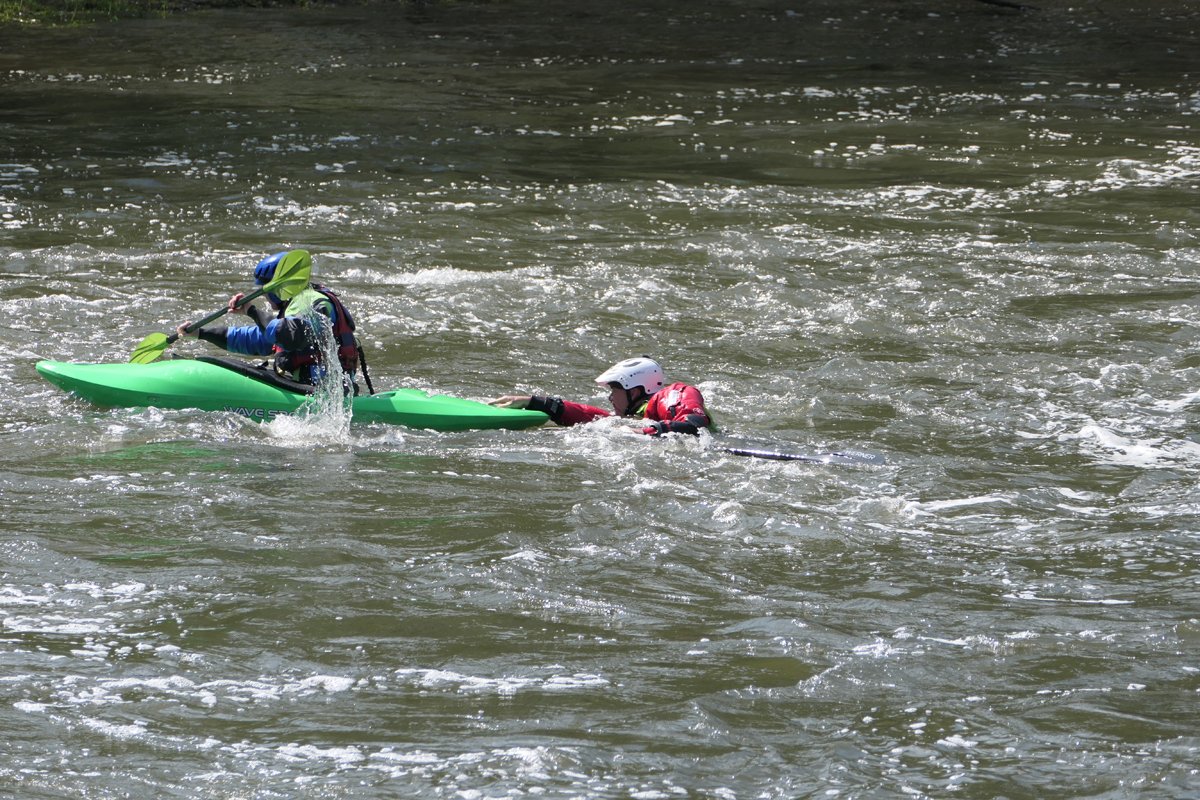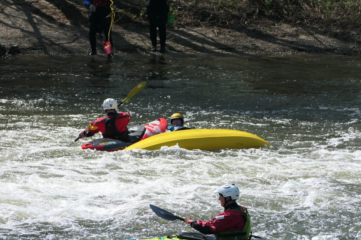 Wer auf bewegtem Wasser unterwegs ist, muss grundlegende Sicherheitsaspekte beherrschen. Das ist wichtig, um sich in einer brenzilgen Situation selbst zu helfen. Mindestens genauso wichtig ist es, anderen Mitpaddlern zuverlässig Hilfe leisten zu können oder einfach nur zu wissen, wie man mit schwierigen Situation richtig umgeht. Daher müssen Methoden zum Retten und Bergen regelmässig trainiert werden. Im April haben wir die noch recht guten Wasserstände direkt vor der Haustür genutzt und am Döhrener Wehr kräftig geübt. Ein paar Bilder dokumentieren dies.
