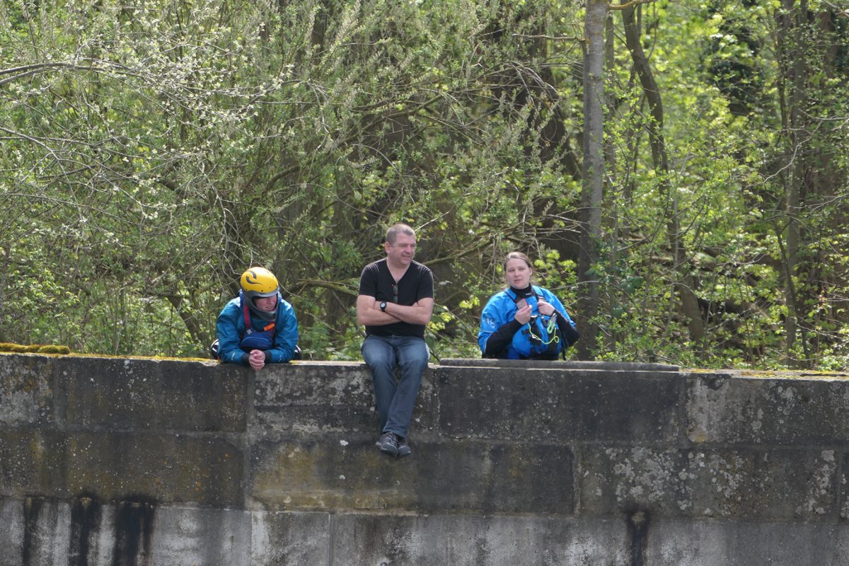 Ganz wichtig: Das Wehr ist im öffentlichen Straßenraum gut einsehbar. So gab es durchaus interessierte Anwohner, denn so einen sportlichen Einsatz sieht man nicht häufig. Dabei müssen wir aber vermeiden, dass unser Handeln falsch interpretiert wird und Unbeteiligte hier gefährliche Situationen vermuten, die gar nicht vorgekommen sind. Alles wird immer mit mehreren Paddlern abgesichert und erfolgt als kontrollierte Übung. Ein falscher Notruf "ertrinkender Paddler" wäre also weder für die Übenden hilfreich noch als Fehlalarm gut. Diesen Aktionstag haben wir daher vorher mit den richtigen Stellen kommuniziert - bitte nicht einfach so nachmachen.