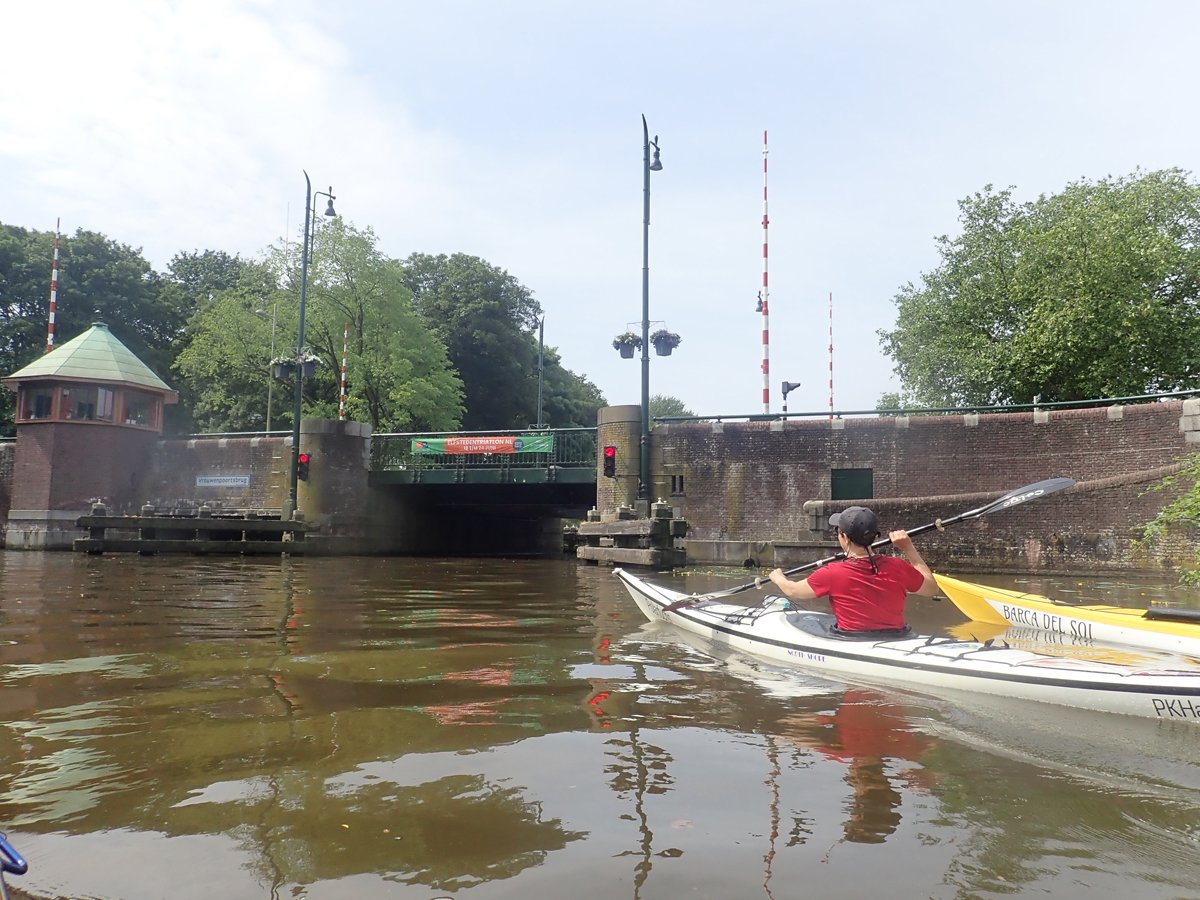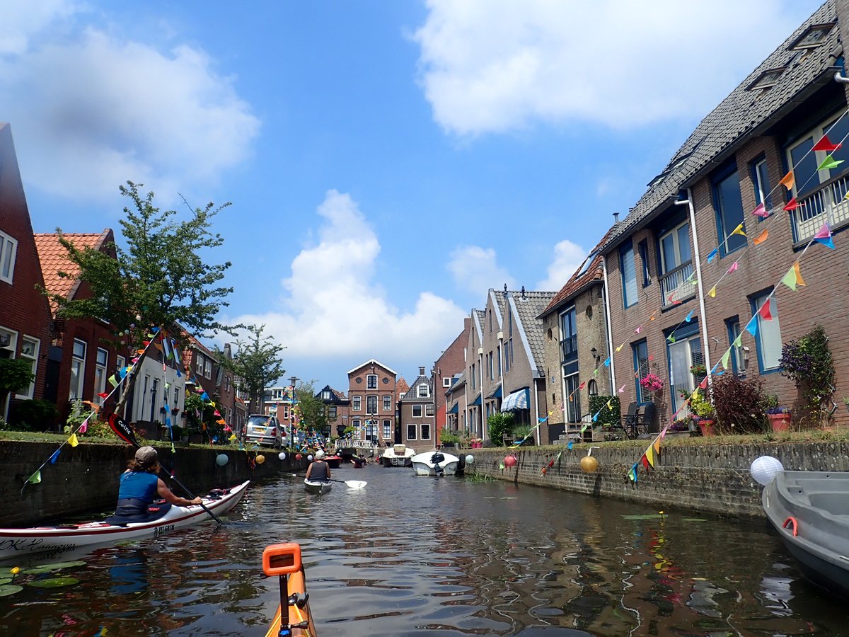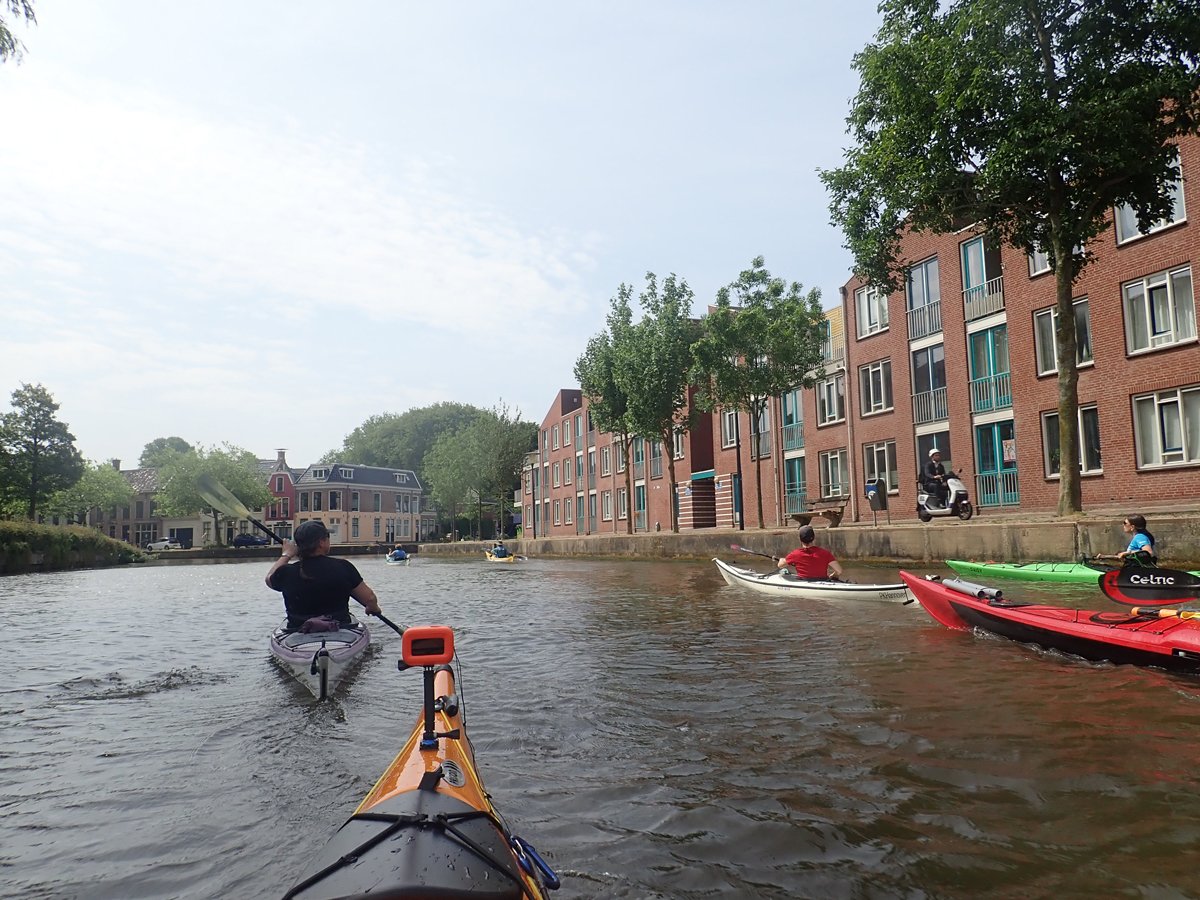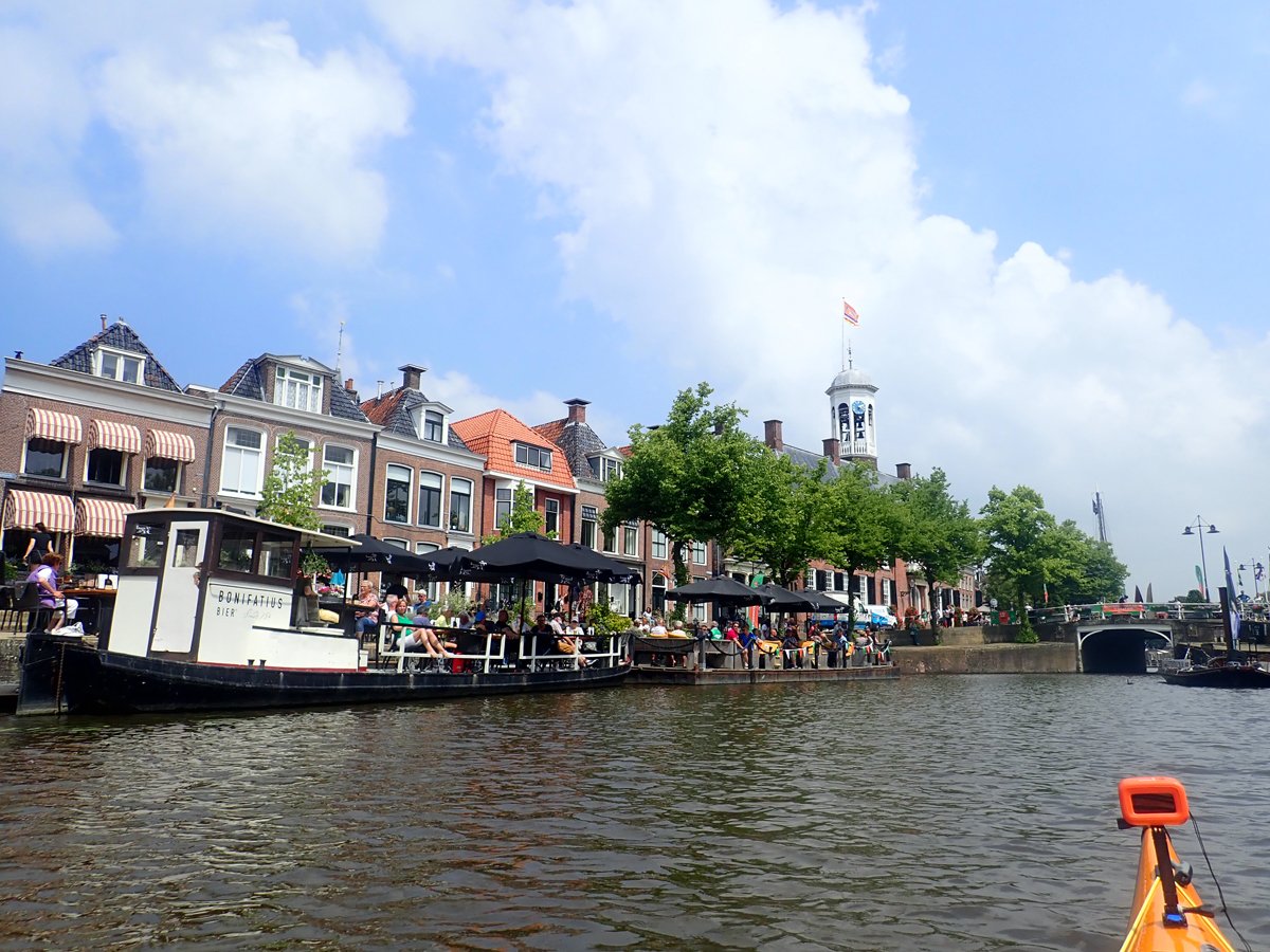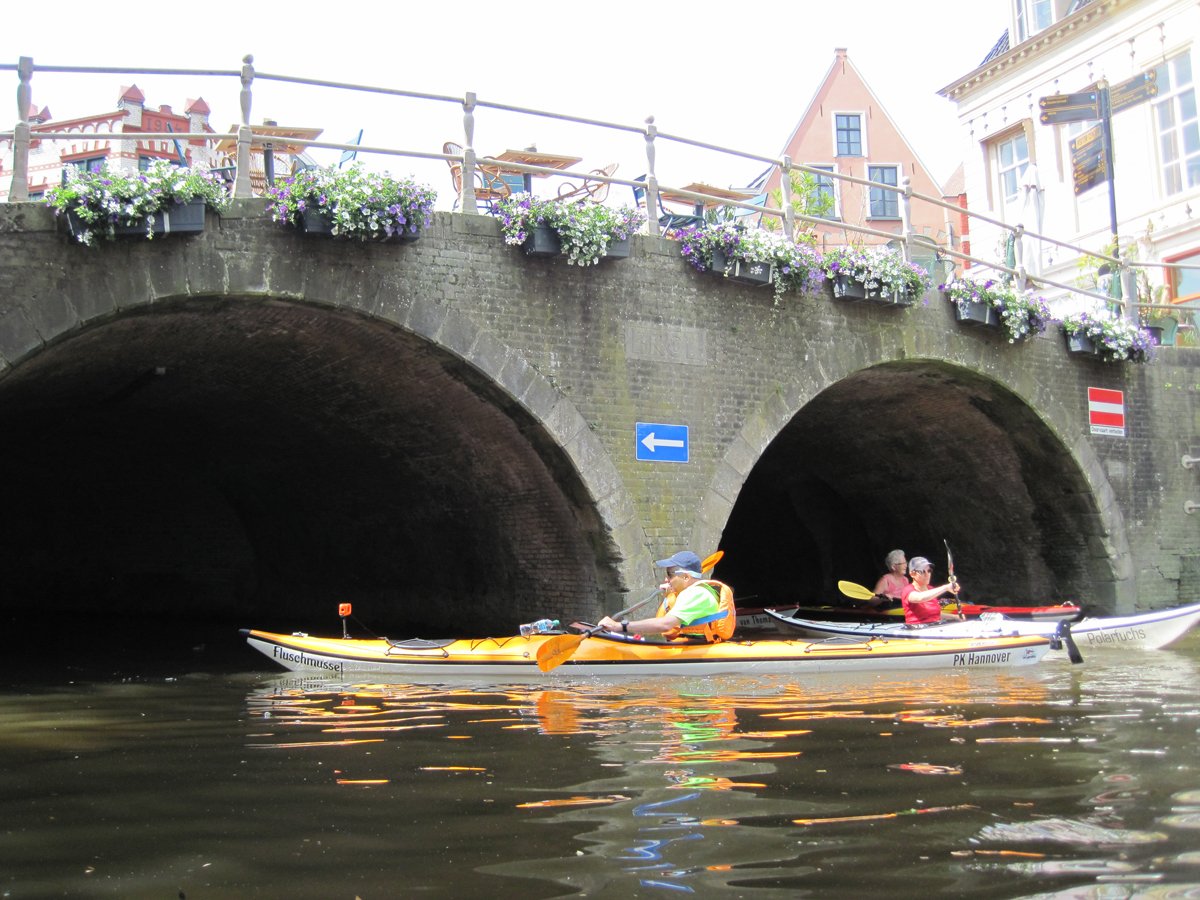 Weitere Touren führten uns in die Provinzhauptstadt Leeuwarden und den Nachbarort Dokkum. Während die erste Fahrt eine echte Rundfahrt durch die Siedlungen und die Innenstadtgrachten war, führte die Tour nach Dokkum zwar auch durch den Ort, aber auch zu abenteuerlichen Abschnitten im Umland. Nicht mehr zugängliche Umtragestellen, spontane Neuplanung und niedrige Tunnel inklusive.