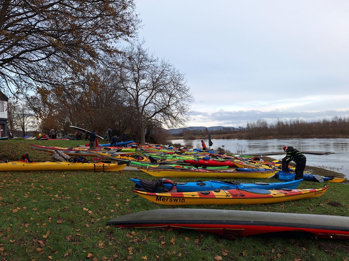 Die Rintelner Eisfahrt ist unter den DKV-Gemeinschaftsfahrten sicher ein absoluter Klassiker. Auf der Weser wird am zweiten Wochenende im Dezember die 26 Kilometer lange Strecke von Hameln nach Rinteln gepaddelt. Unterwegs gibt es zum Aufwärmen einen Versorgungsstand an der Fähre Großenwieden. Die Tour wird seit Beginn vom Rintelner Kanu-Club organisiert und feierte in 2023 ein Jubiläum: Zum 50. Mal wurde sie ausgerichtet. Natürlich waren wir mit dabei.