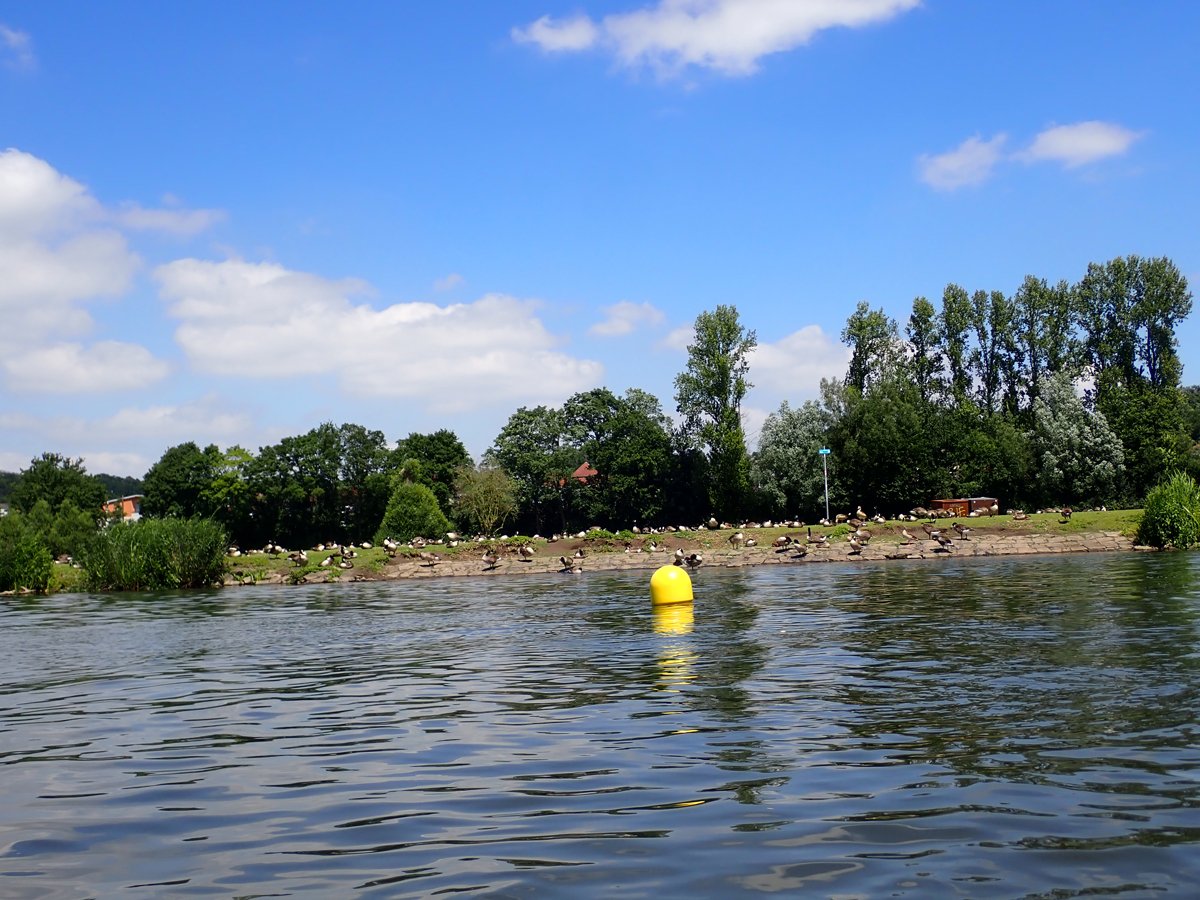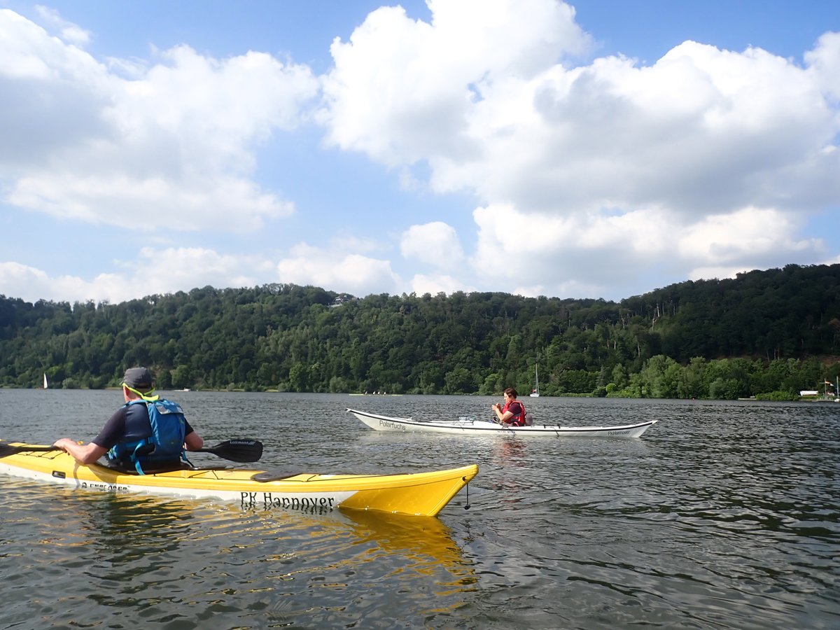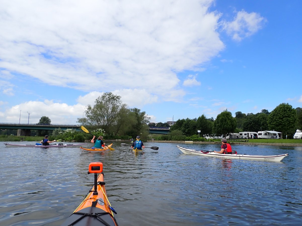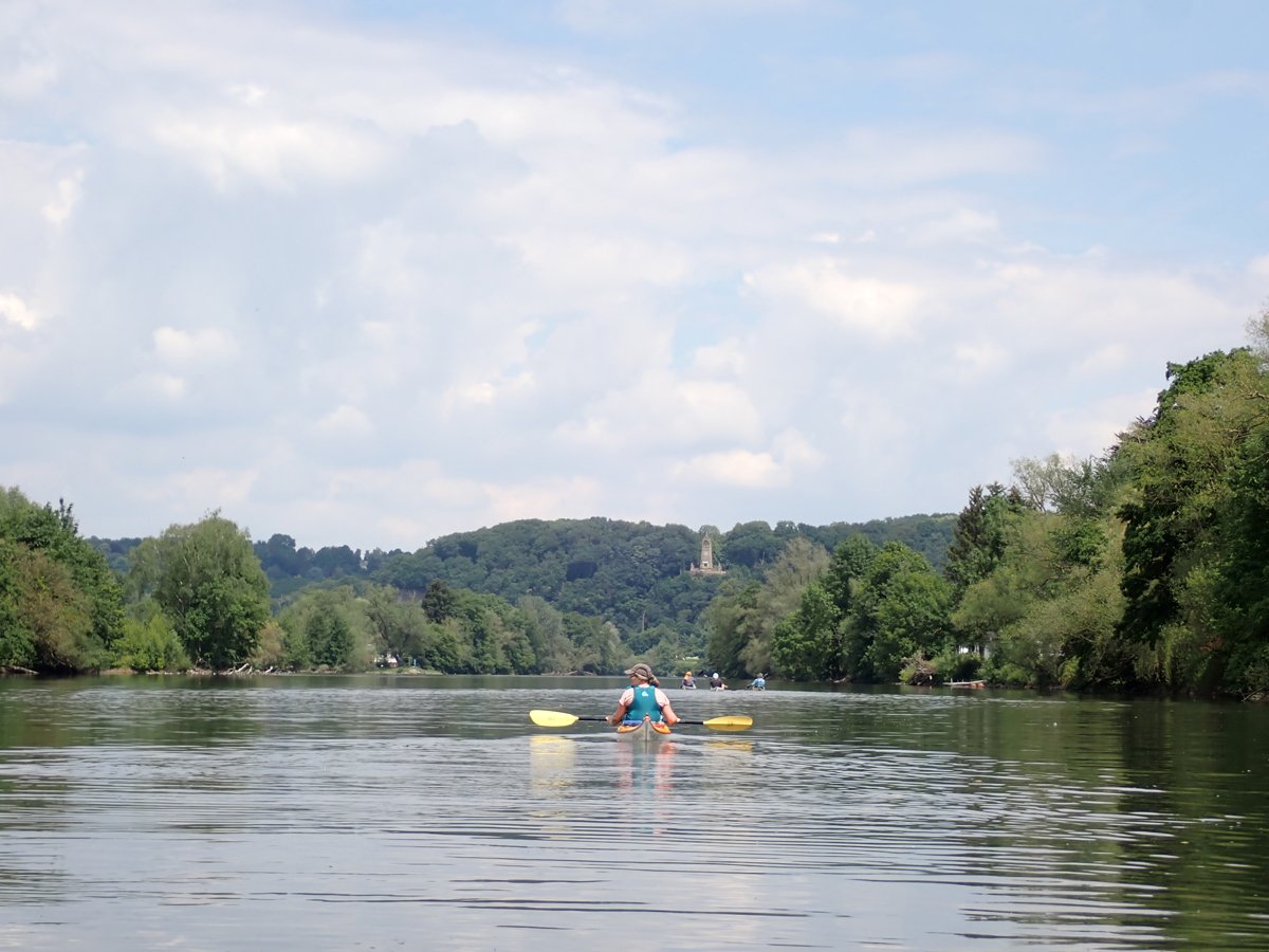 An den drei Folgetagen machten wir ganz unterschiedlich lange Touren auf der Ruhr. Insgesamt wurde die ca. 60 Kilometer lange Strecke von Hagen-Vorhalle bis Essen-Werden gepaddelt. Kemnader See und vor allem der schöne Baldeneysee lagen auf der Strecke. Ruhige Abschnitte wechselten sich mit munterer STrömung ab, an einigen Wehren gab es spannende Bootsgassen, besonders hervorzuheben ist hier die sehr lange und breite Bootsgasse in Hattingen.