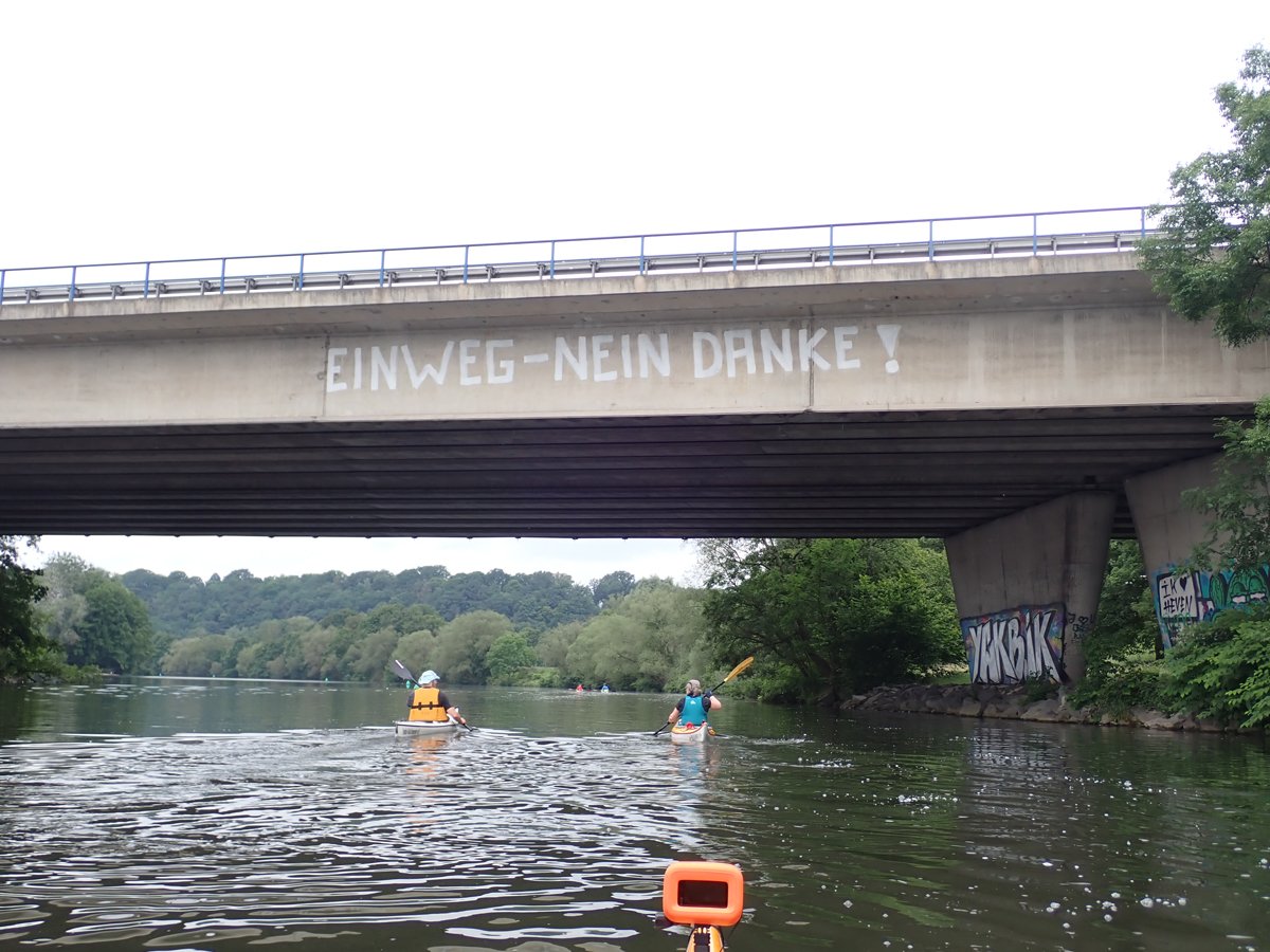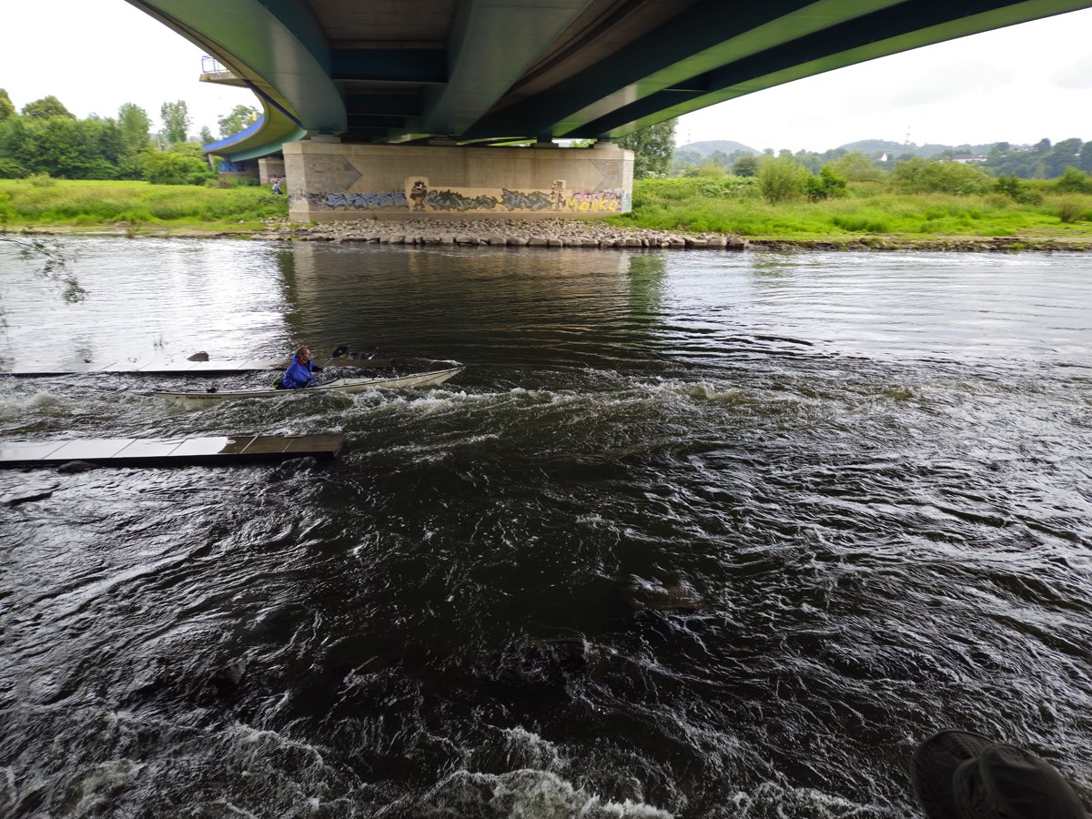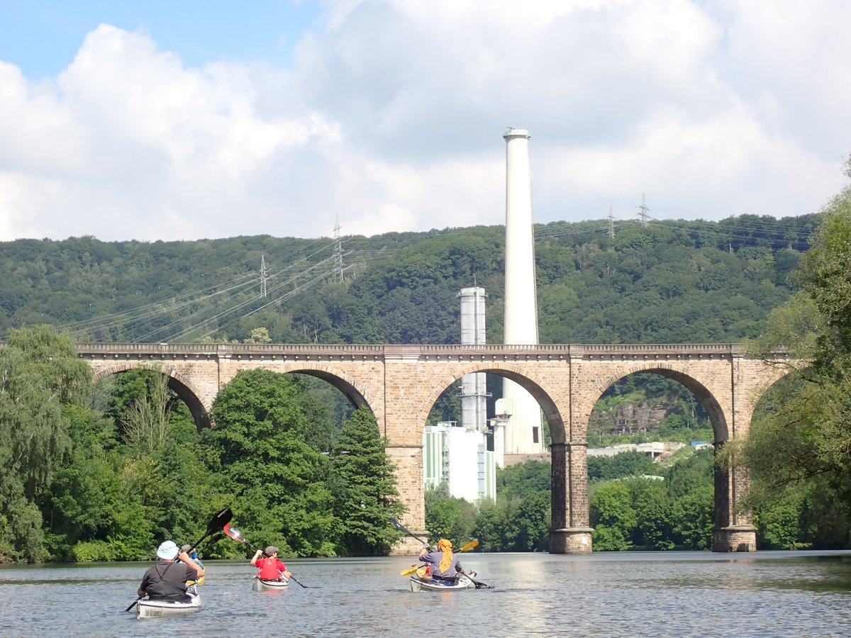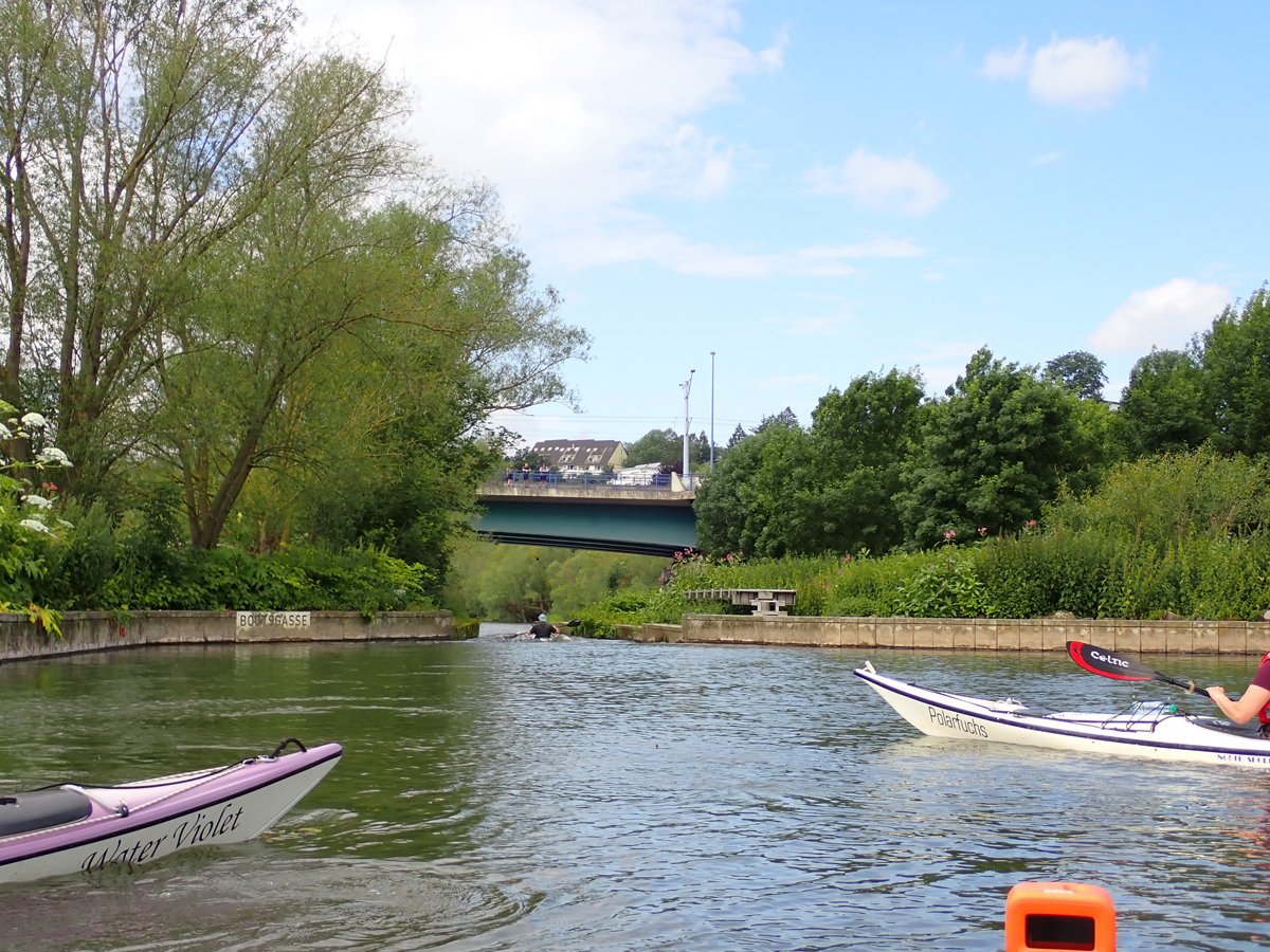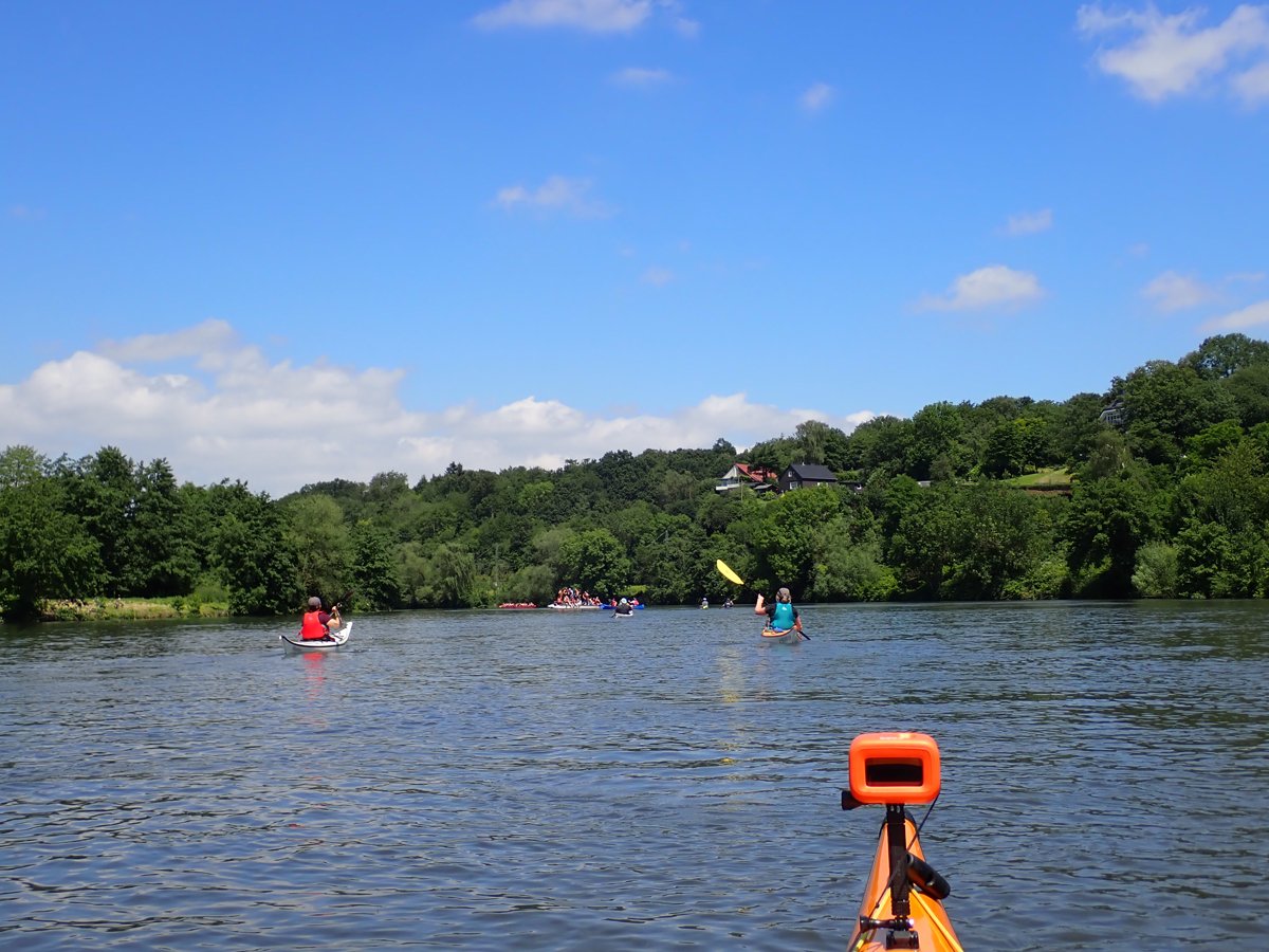 An den drei Folgetagen machten wir ganz unterschiedlich lange Touren auf der Ruhr. Insgesamt wurde die ca. 60 Kilometer lange Strecke von Hagen-Vorhalle bis Essen-Werden gepaddelt. Kemnader See und vor allem der schöne Baldeneysee lagen auf der Strecke. Ruhige Abschnitte wechselten sich mit munterer STrömung ab, an einigen Wehren gab es spannende Bootsgassen, besonders hervorzuheben ist hier die sehr lange und breite Bootsgasse in Hattingen.