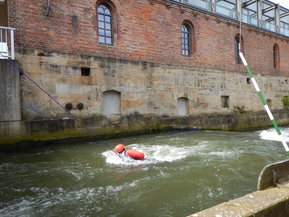 Es wird nass - denn es steht ein Trainingsworkshop im Wildwasserschwimmen, in Rettungs- und Bergungstechniken an.