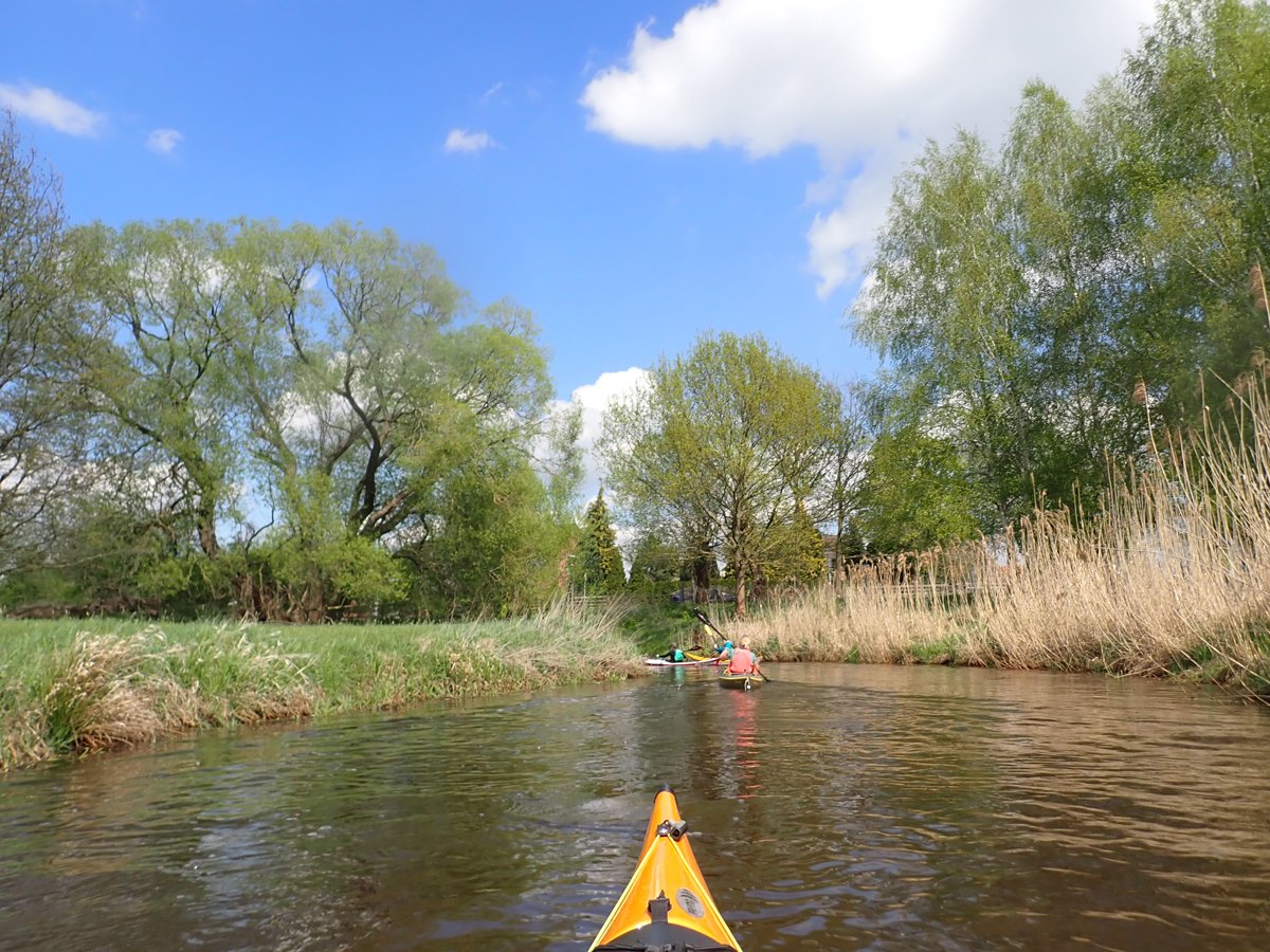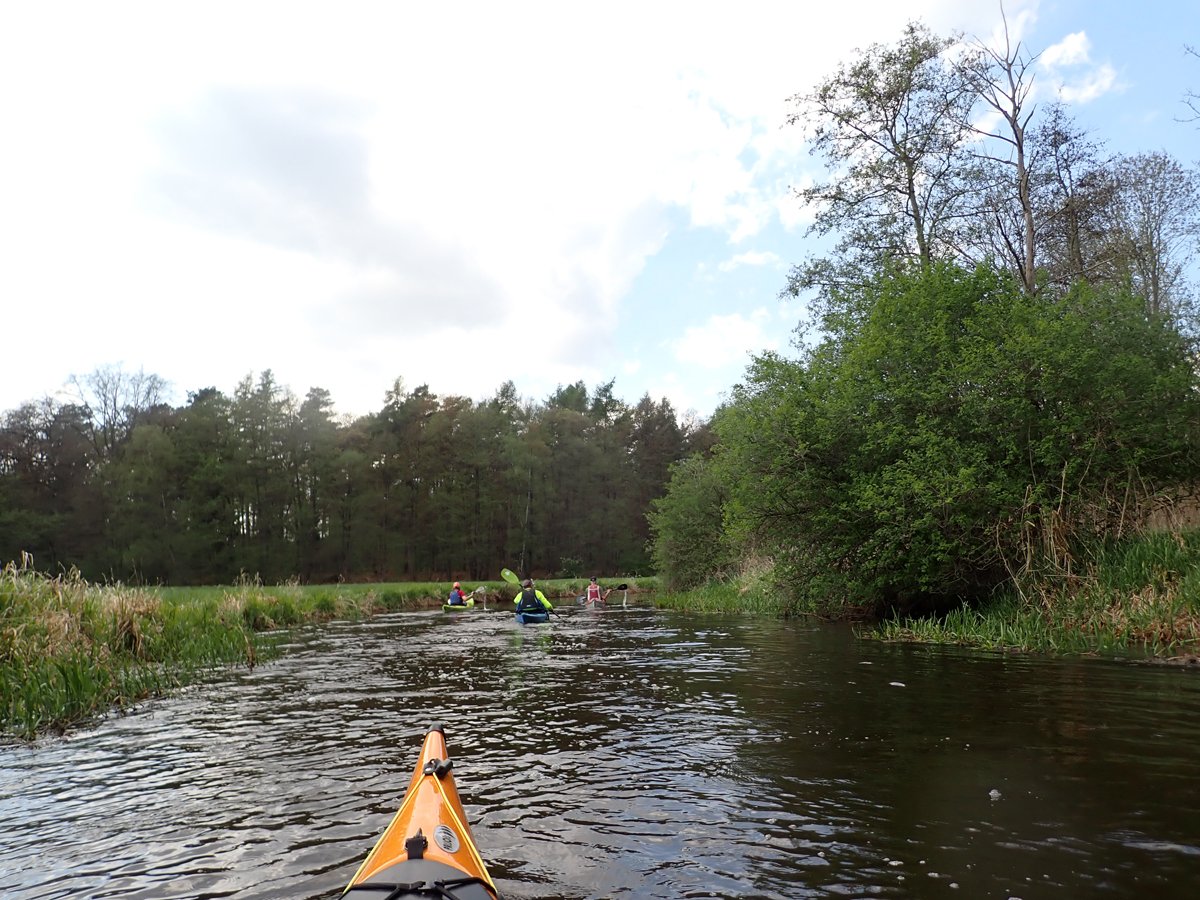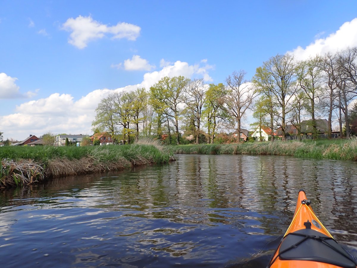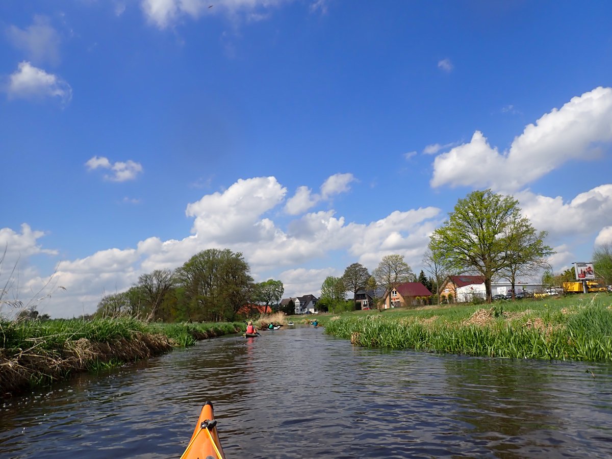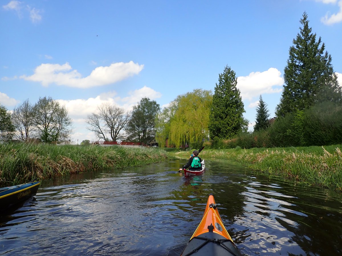 Ostermontag haben wir genutzt für eine Tagestour auf der Gifhorner Aller. Empfinden viele Paddler die Aller ab Celle als relativ langweilig, da sie breit und bei niedrigen Ufern häufig dem Wind ausgesetzt ist, noch dazu durch eine recht langweilige Landschaft fließt, ist es mit der Gifhorner Aller ganz anders: Dieser Abschnitt beginnt kurz hinter Wolfsburg und reicht bis Gifhorn. Auf einer Luftlinie zwischen Start- und Zielpunkt mit ca. 11 Kilometern legt der Fluss fast 20 Kilometer zurück: Zählt man alle Kurven und Knicke, kommt man auf rund 190 davon. Dieses freie mändern des Flusslaufes hat man nur noch selten und das macht das meist schmale Gewässer sehr reizvoll. Noch dazu komtm nur eine Umtragestelle kurz vor dem Ziel.