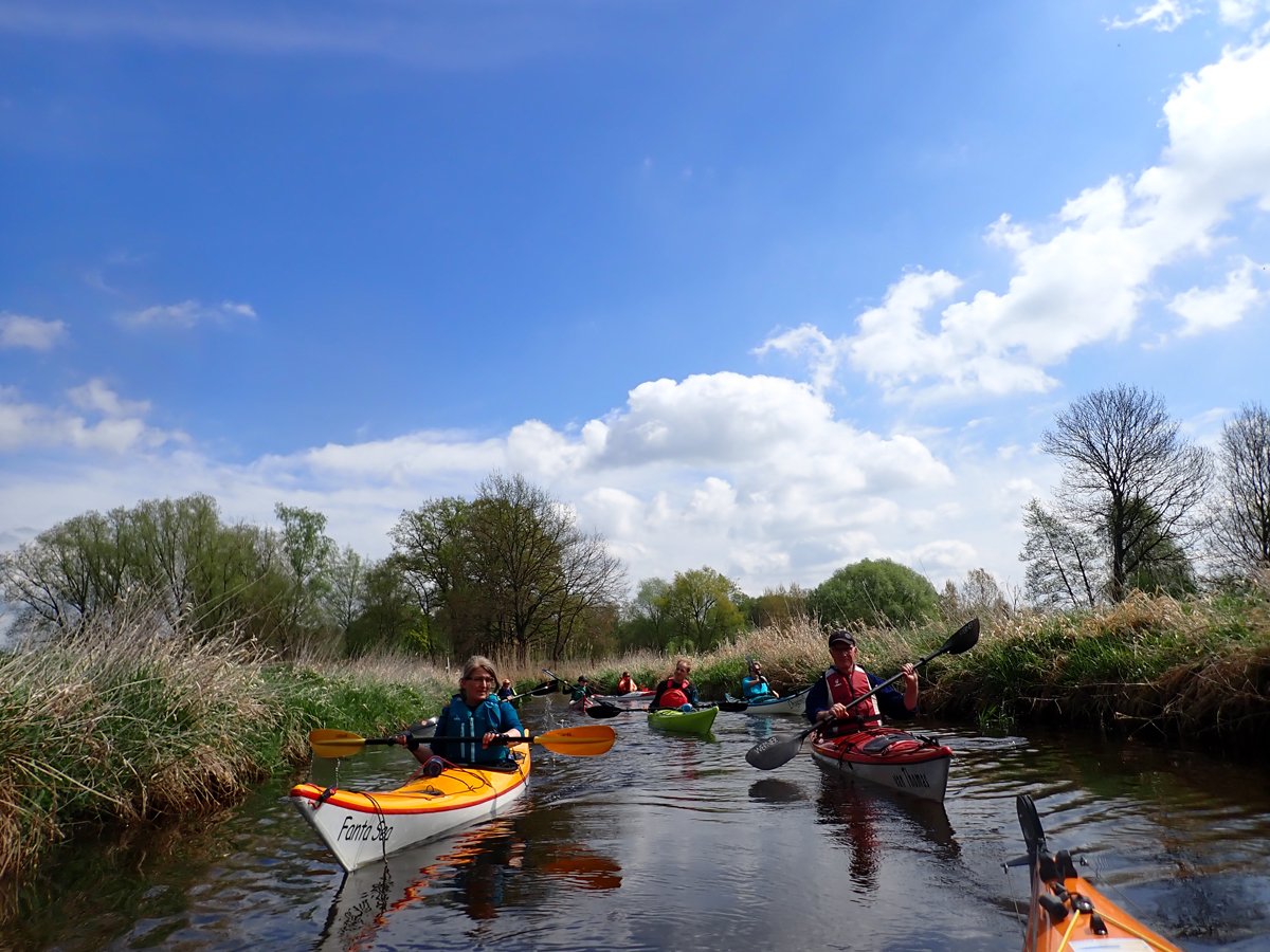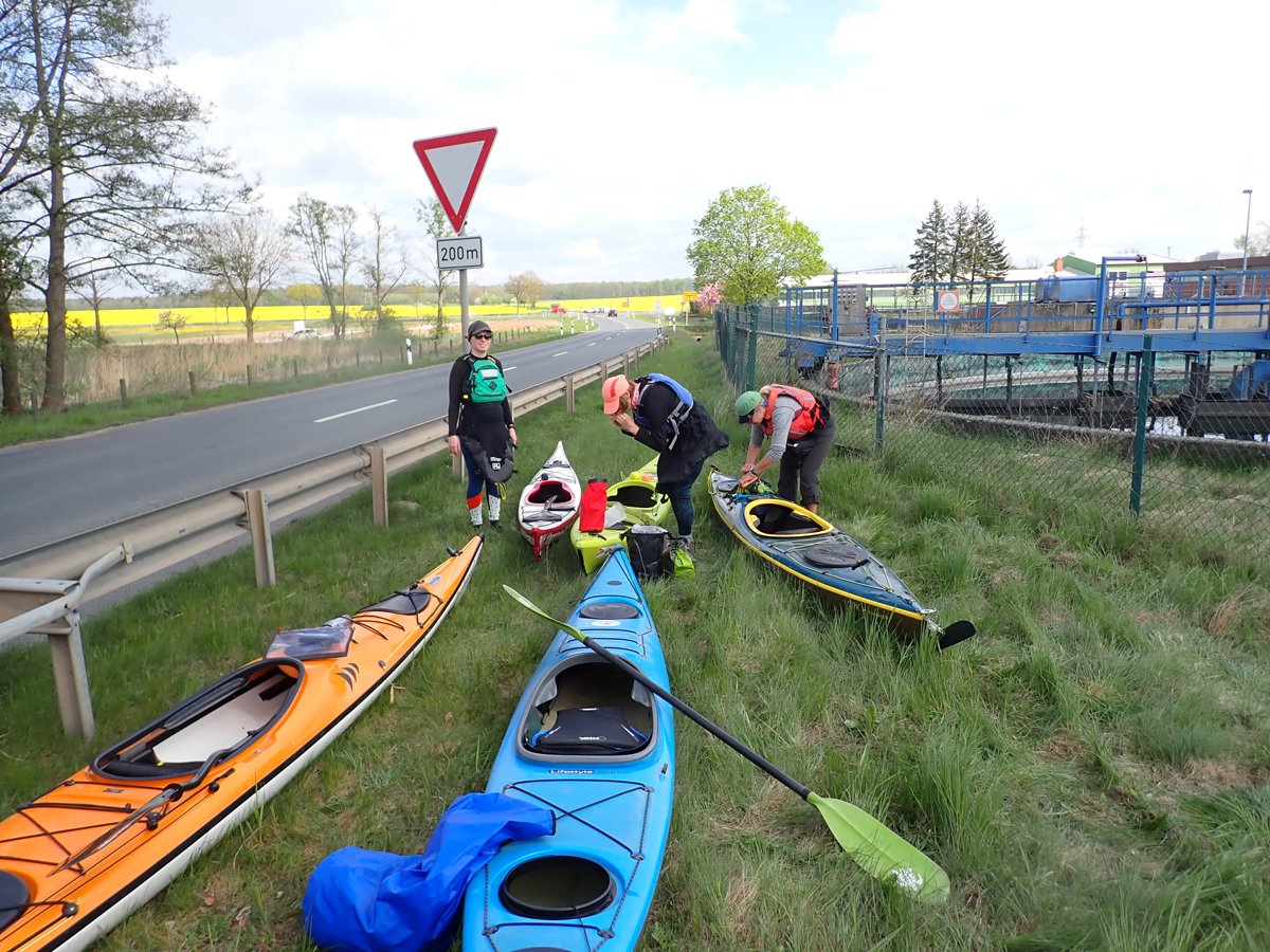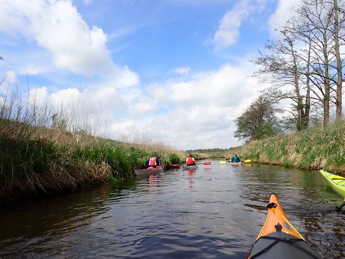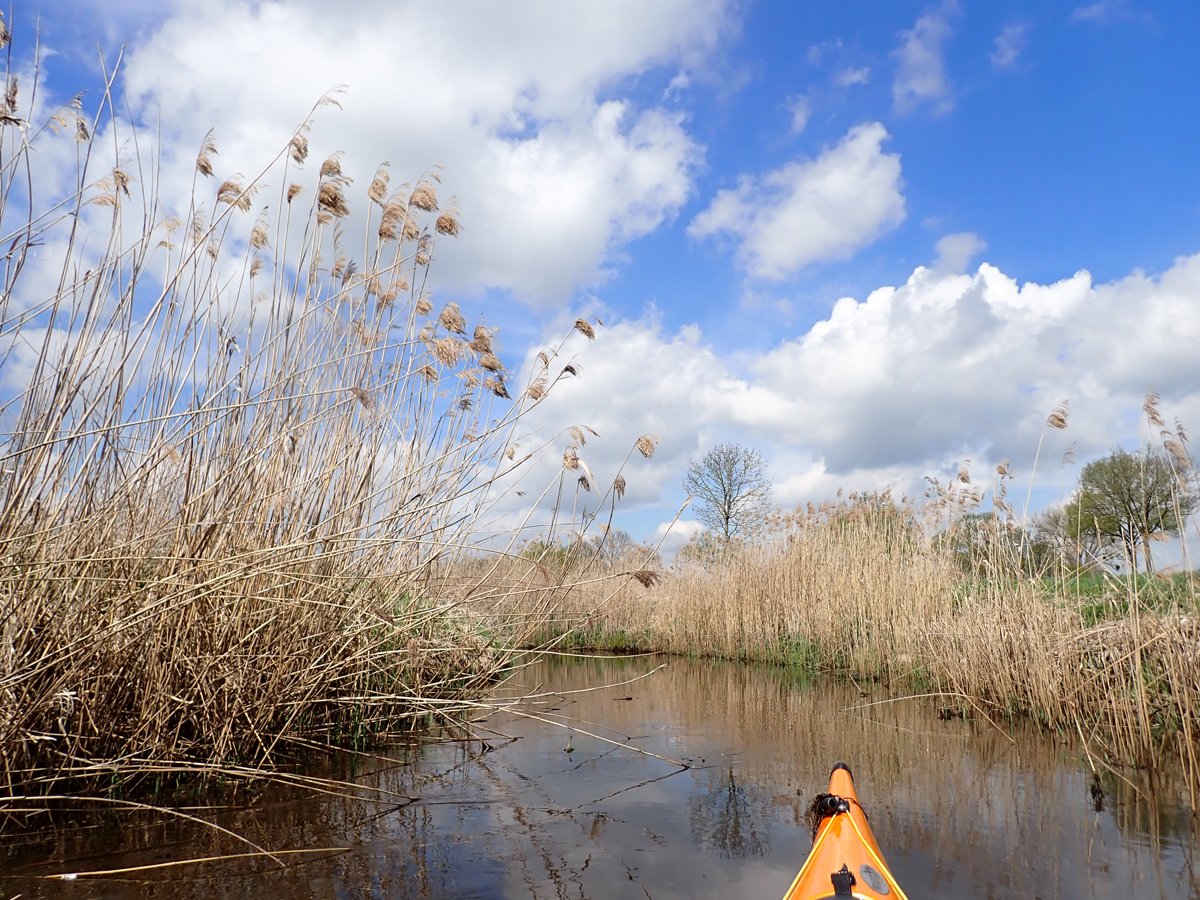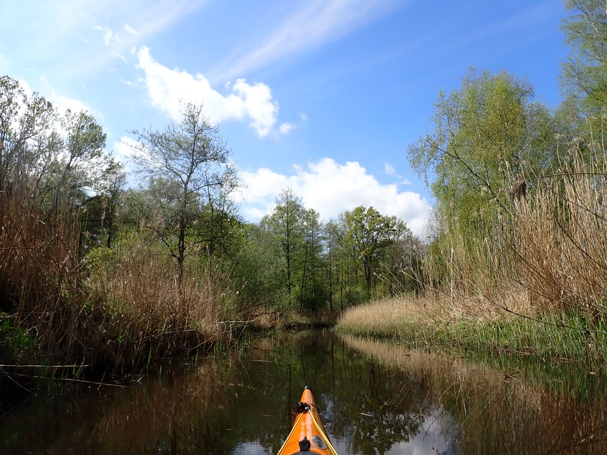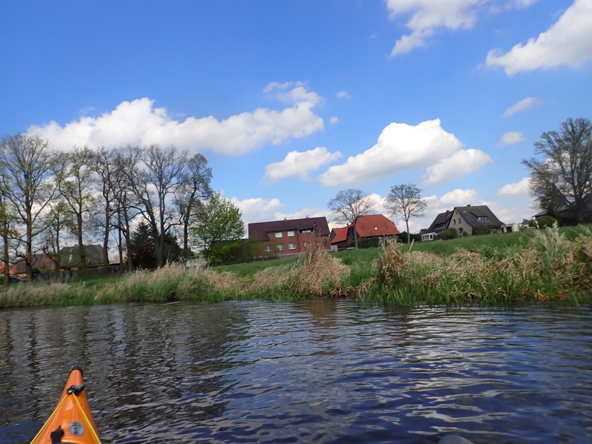 Ostermontag haben wir genutzt für eine Tagestour auf der Gifhorner Aller. Empfinden viele Paddler die Aller ab Celle als relativ langweilig, da sie breit und bei niedrigen Ufern häufig dem Wind ausgesetzt ist, noch dazu durch eine recht langweilige Landschaft fließt, ist es mit der Gifhorner Aller ganz anders: Dieser Abschnitt beginnt kurz hinter Wolfsburg und reicht bis Gifhorn. Auf einer Luftlinie zwischen Start- und Zielpunkt mit ca. 11 Kilometern legt der Fluss fast 20 Kilometer zurück: Zählt man alle Kurven und Knicke, kommt man auf rund 190 davon. Dieses freie mändern des Flusslaufes hat man nur noch selten und das macht das meist schmale Gewässer sehr reizvoll. Noch dazu komtm nur eine Umtragestelle kurz vor dem Ziel.