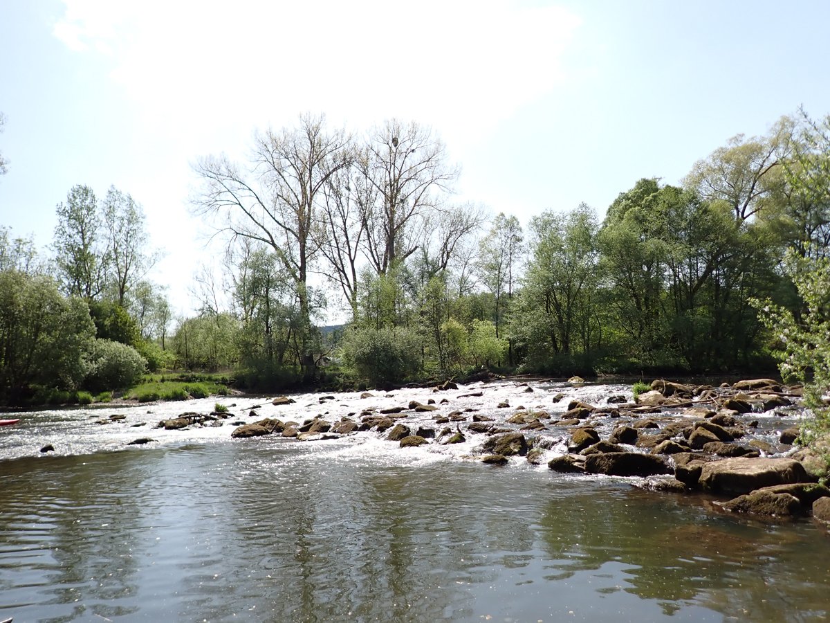 Die Schwalm ist ein Nebenfluss der weitaus bekannteren Eder, die das zweite Ziel darstellte. Bei genügend Wasser sicher eine interessante Fahrt. Schließlich versorgt die Eder über den Ederstausee die Weser in trockenen Zeiten mit genügend Nachschub, damit die Schifffahrt auf der Weser funktioniert. Nur war die Weser zu unserem Zeitpunkt (leider) so gut gefüllt, dass es vom Ederstausee nur die Mindestabgabemenge Wasser in die Eder gab und der Fluss deutlich zu trocken war. Merke: Am unteren Limit der Abgabemenge sollte man die Eder auslassen.