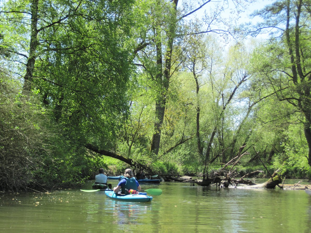 Den Anfang machte der Kleinfluss Schwalm, den es sich tatsächlich zu erarbeiten galt, mit zahlreichen Bäumen und Sträuchern und einem aufwändig zu umtragenden Wehr. Doch diese kleine Herausforderung machte die als Entdeckertour ausgeschriebene Fahrt erst spannend und die Schwalm zu einem lohnenden Tipp, wäre sie nicht so weit entfernt.
