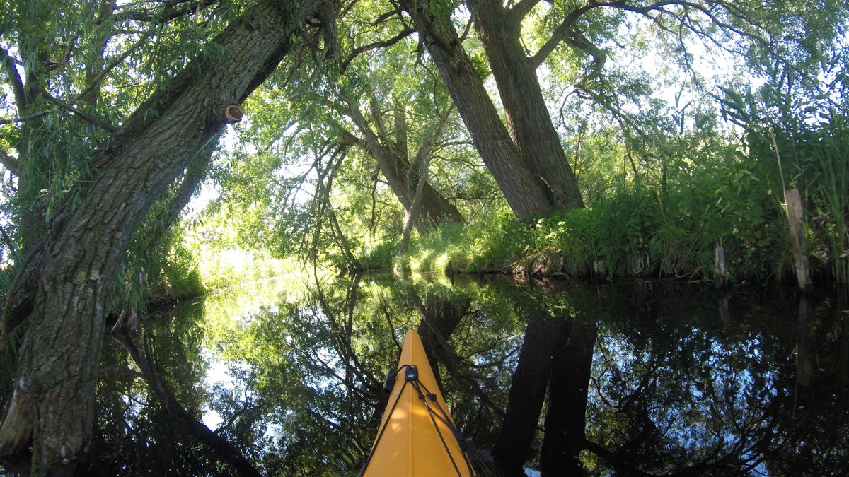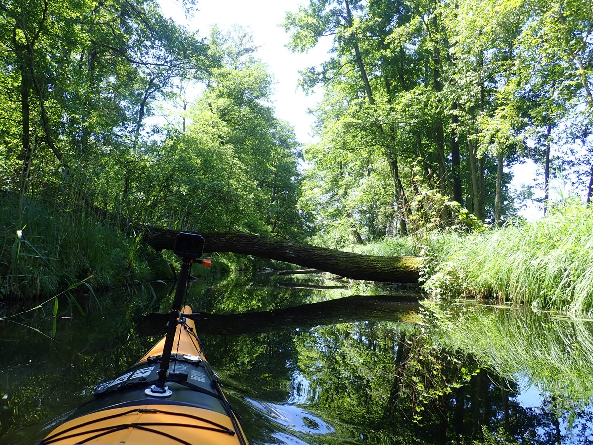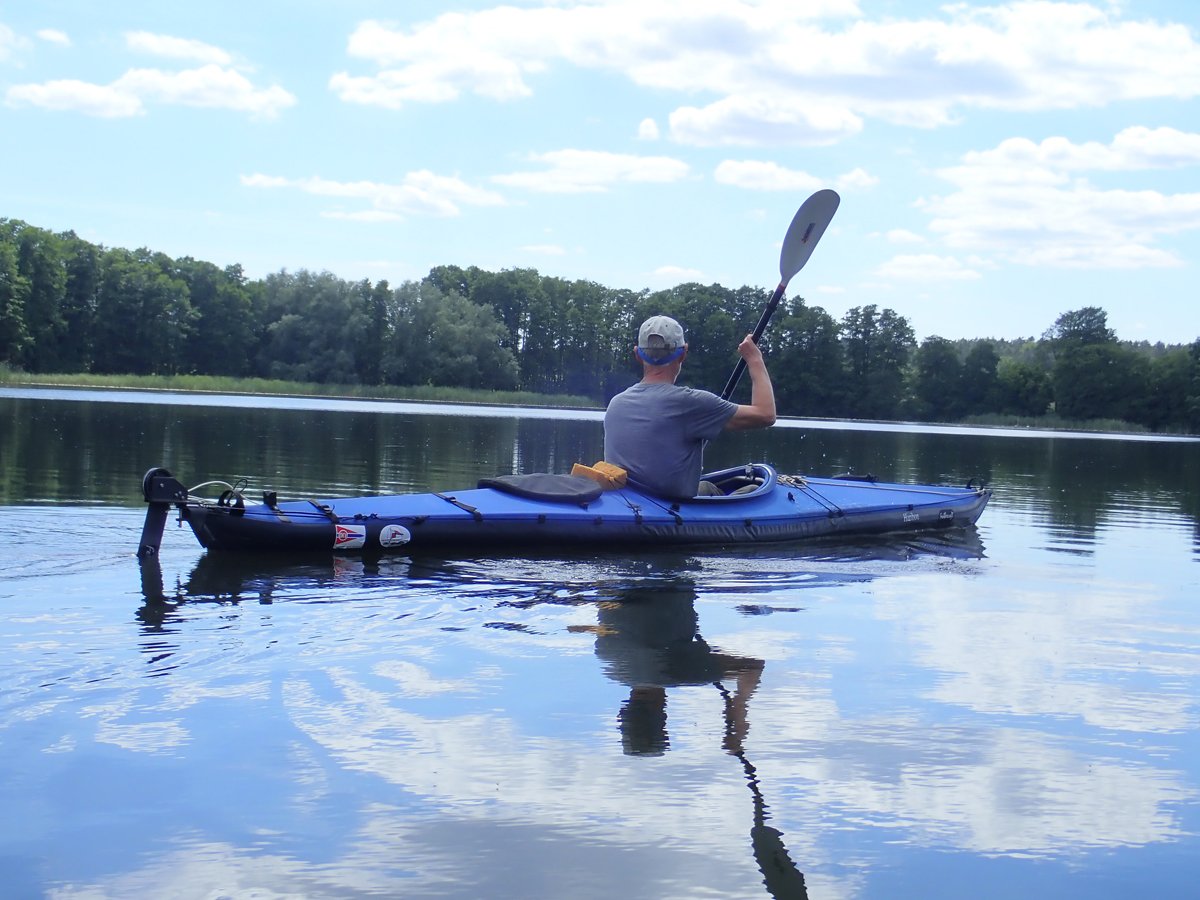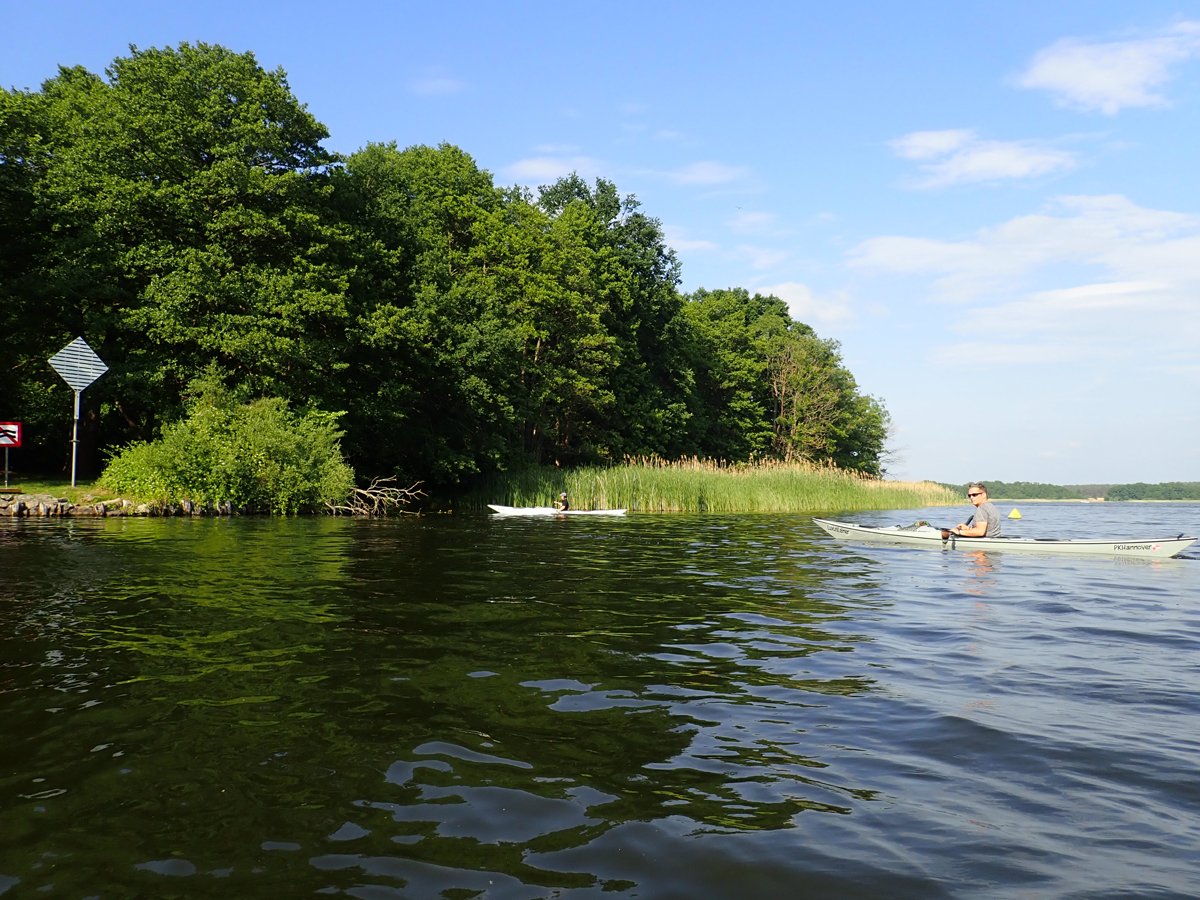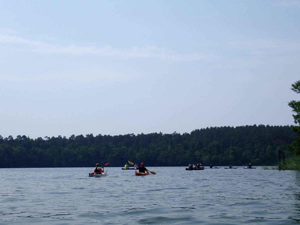 Noch am Ankunftsabend ging es für eine kurze Tour aufs Wasser: Vom nördlichen Seeende die Havel aufwärts Richtung Labus-See und zurück. Der zweite Tag führte uns an die obere Havel: Vom Käbeliksee, dem Havelquellsee, über viele kleinere Seen und wechselnd durch enge Flussläufe folgten wir der Havel bis nach Blankenförde, wo wir die Tour kurz vor einem heftigen Gewitter abbrechen mussten.