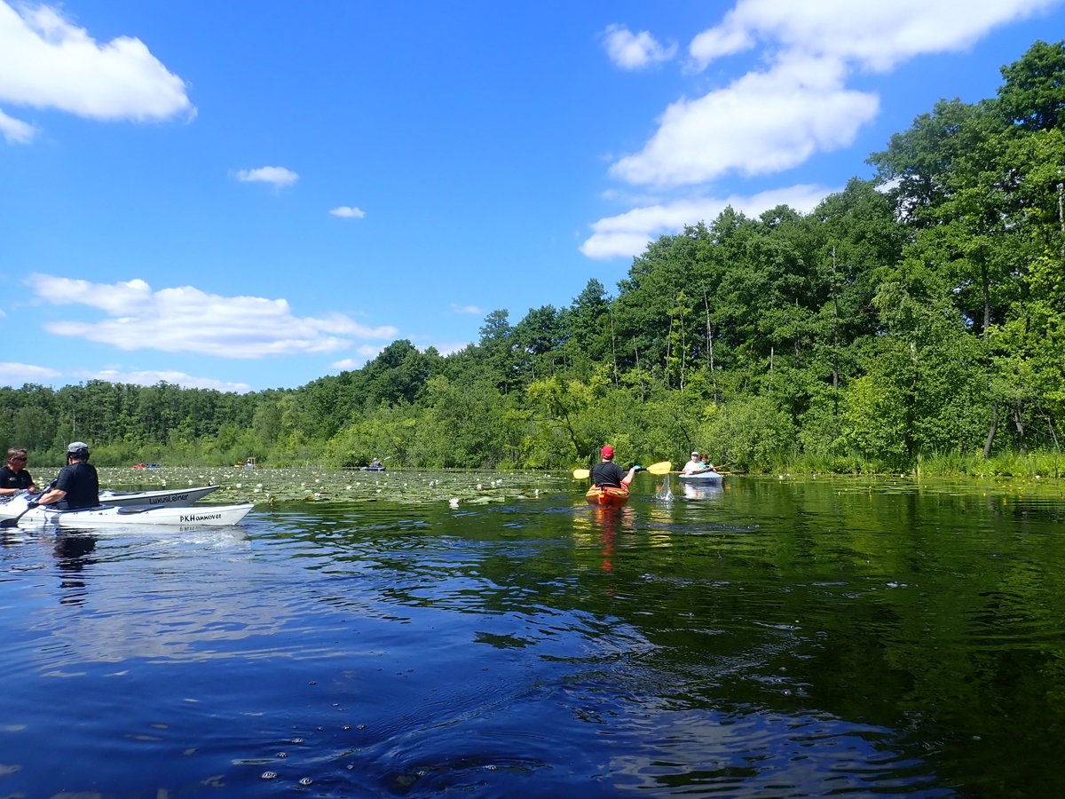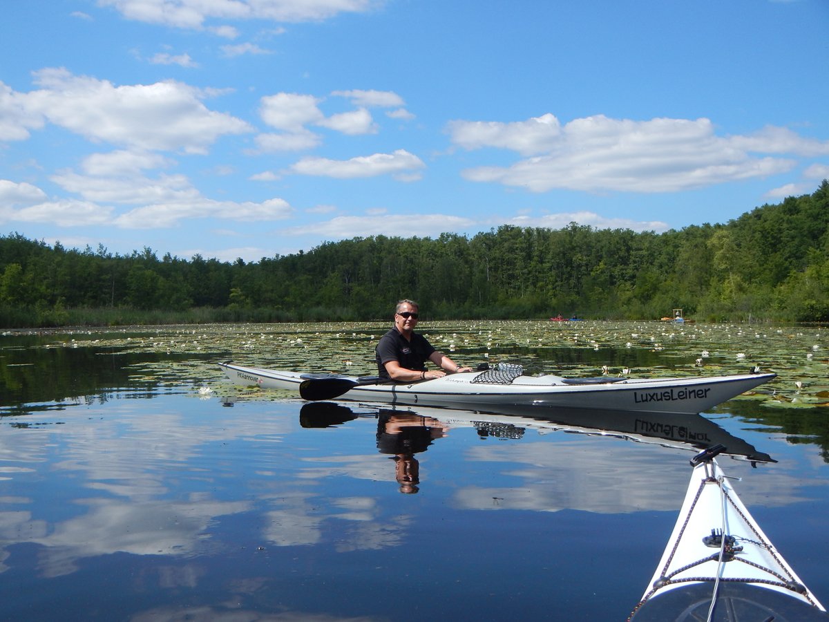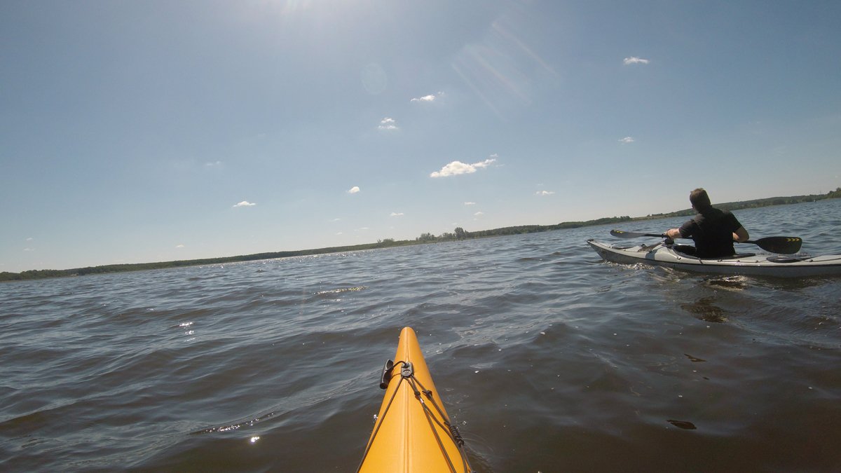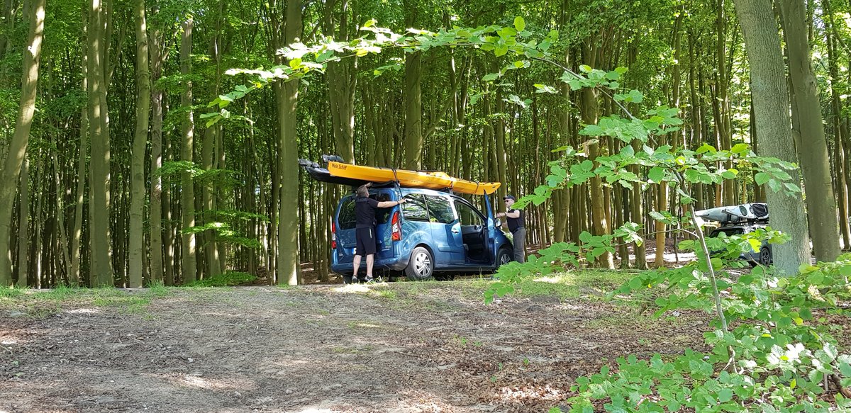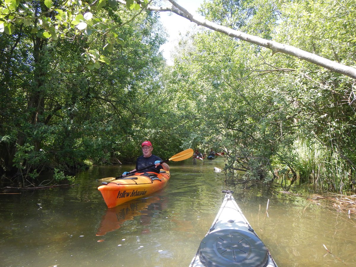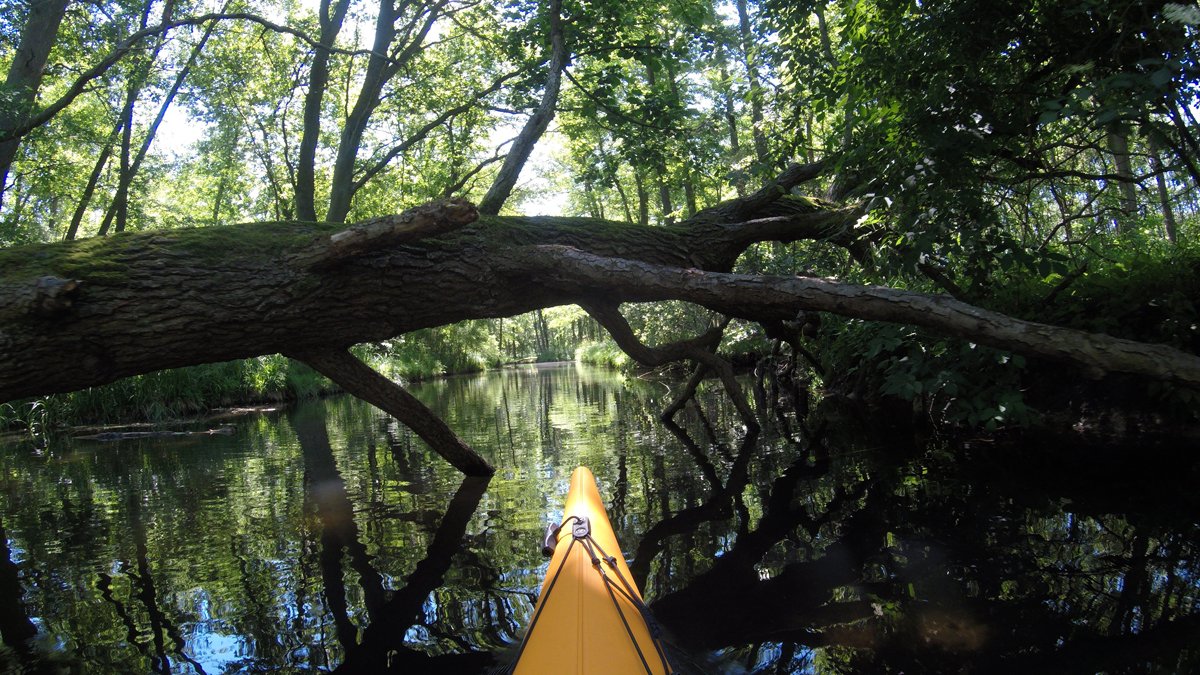 Noch am Ankunftsabend ging es für eine kurze Tour aufs Wasser: Vom nördlichen Seeende die Havel aufwärts Richtung Labus-See und zurück. Der zweite Tag führte uns an die obere Havel: Vom Käbeliksee, dem Havelquellsee, über viele kleinere Seen und wechselnd durch enge Flussläufe folgten wir der Havel bis nach Blankenförde, wo wir die Tour kurz vor einem heftigen Gewitter abbrechen mussten.