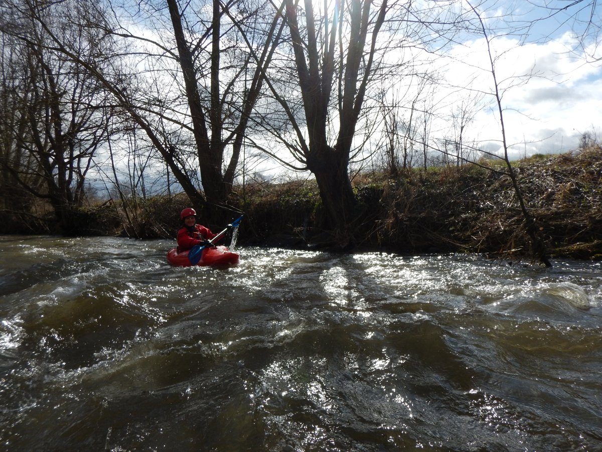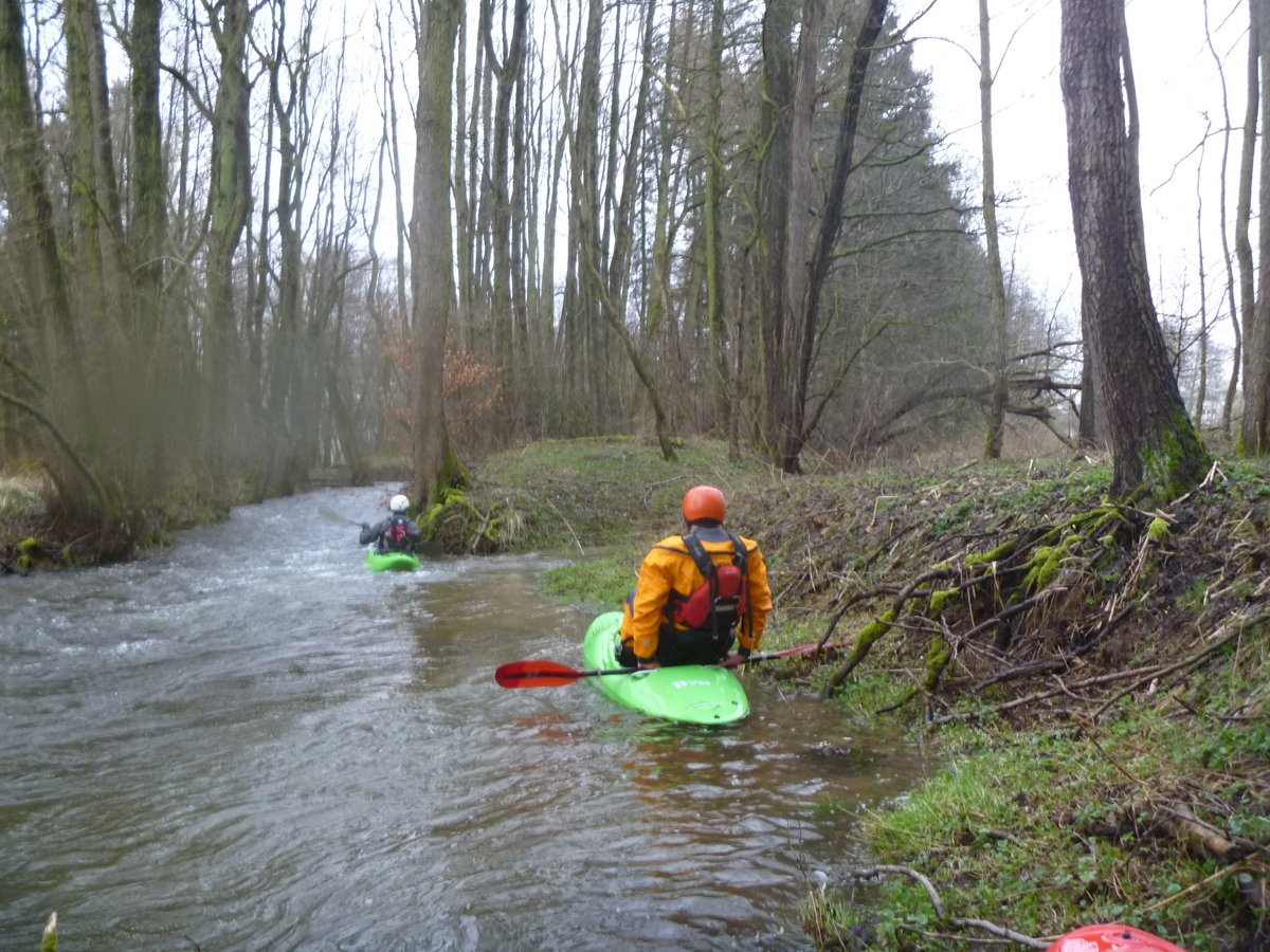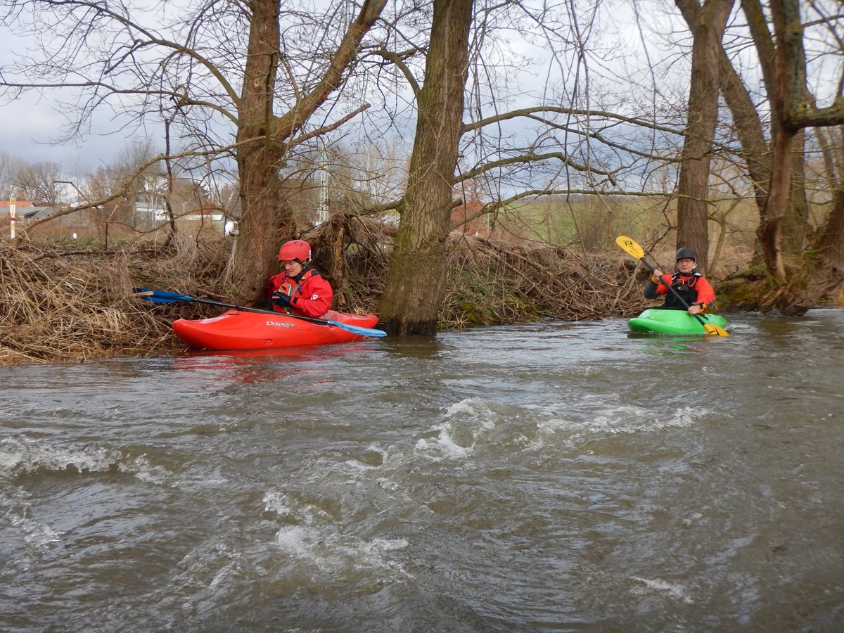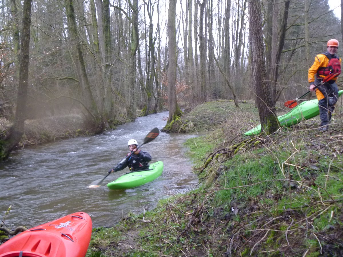 Zwei Wochenenden mit Kleinflussspaß auf der Ilme: Die erste Tour auf der Ilme, einem linken Nebenfluss der Leine aus dem Einbecker Raum, führte von der Straßenbrücke Juliusmühle bis nach Einbeck. Bei einem Pegel von 128 in Oldendorf gab es einen schönen spritzigen Kleinfluss.