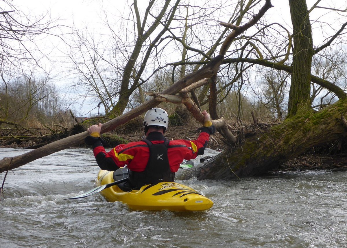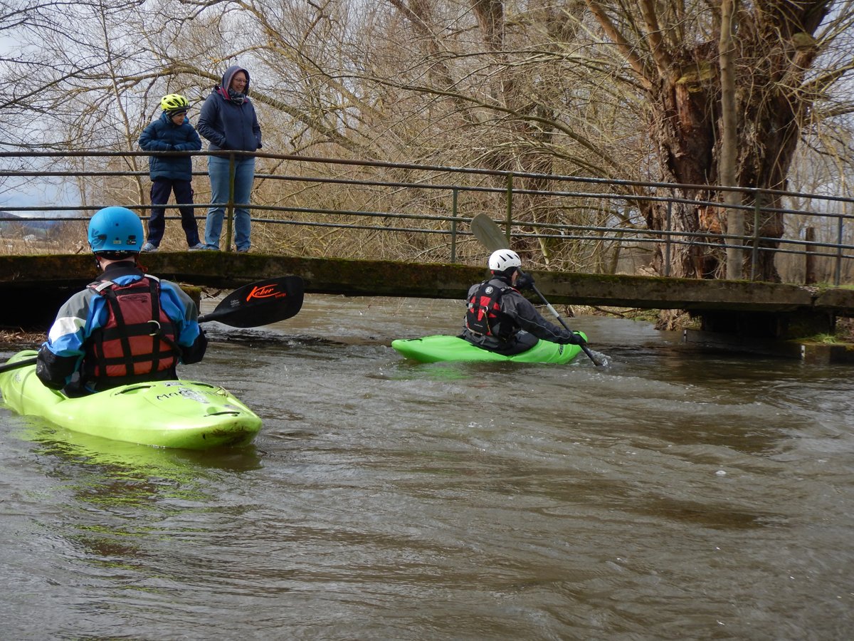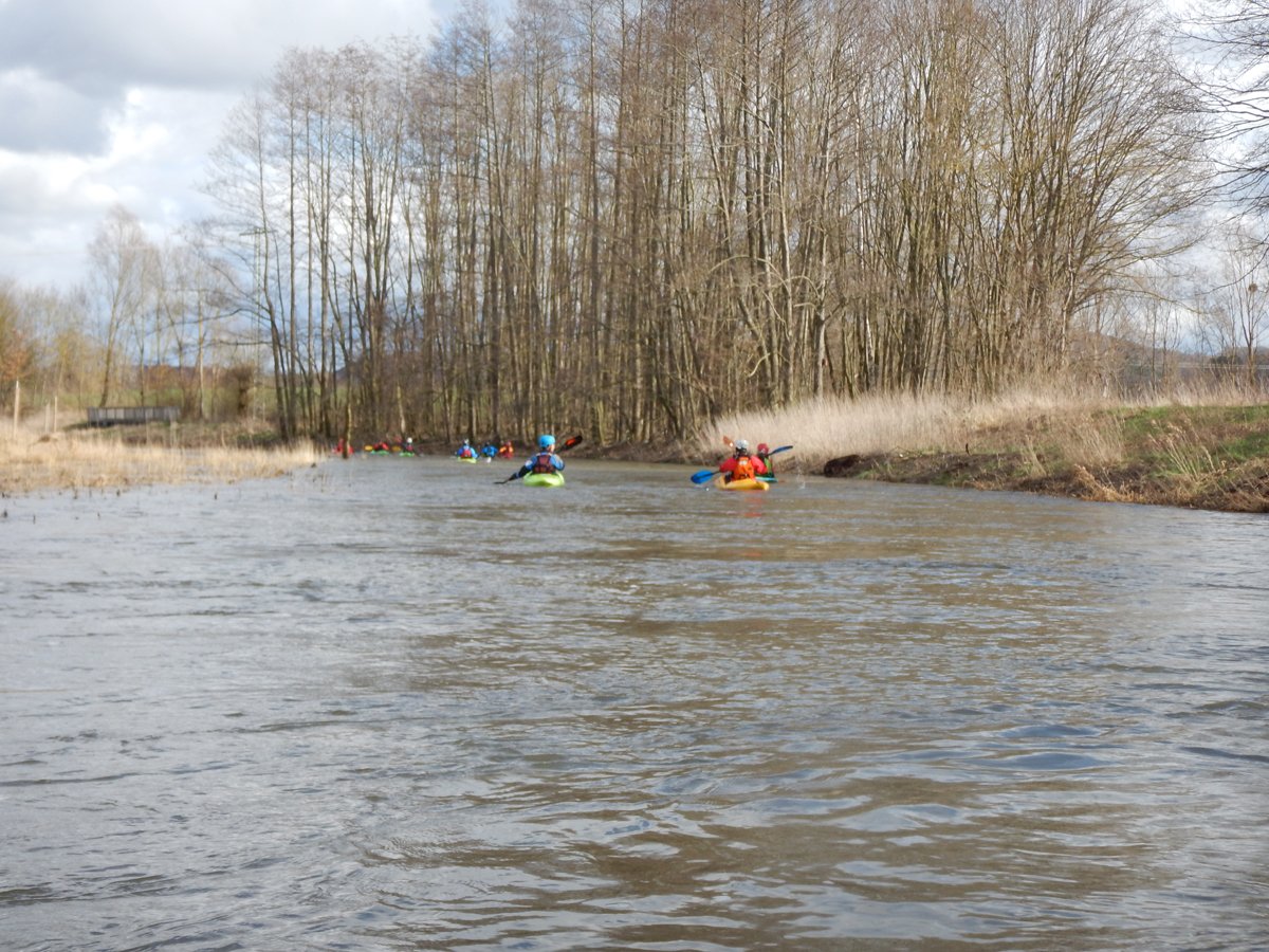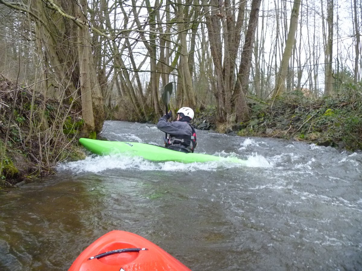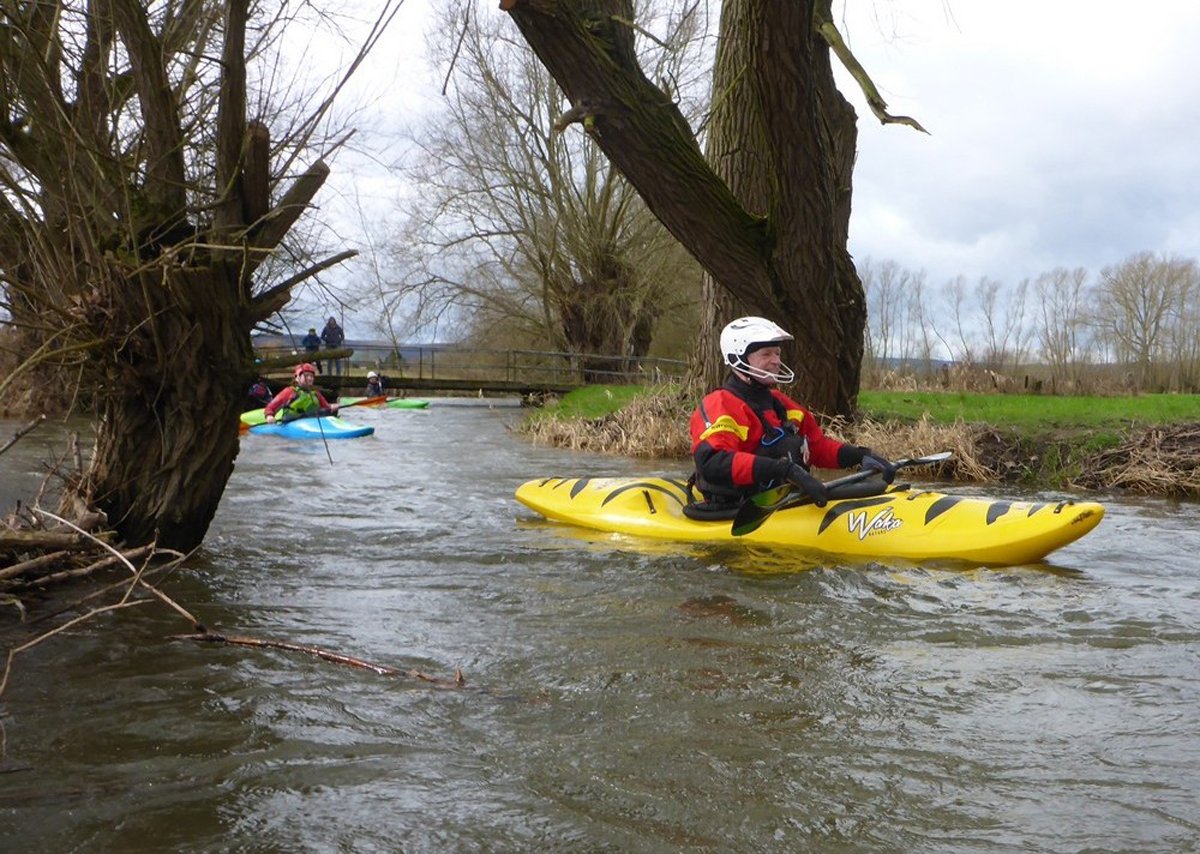 Zwei Wochenenden mit Kleinflussspaß auf der Ilme: Die erste Tour auf der Ilme, einem linken Nebenfluss der Leine aus dem Einbecker Raum, führte von der Straßenbrücke Juliusmühle bis nach Einbeck. Bei einem Pegel von 128 in Oldendorf gab es einen schönen spritzigen Kleinfluss.