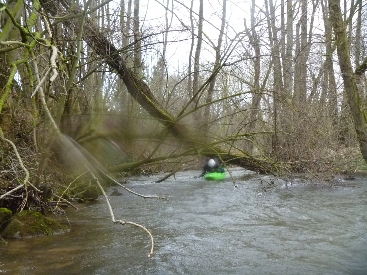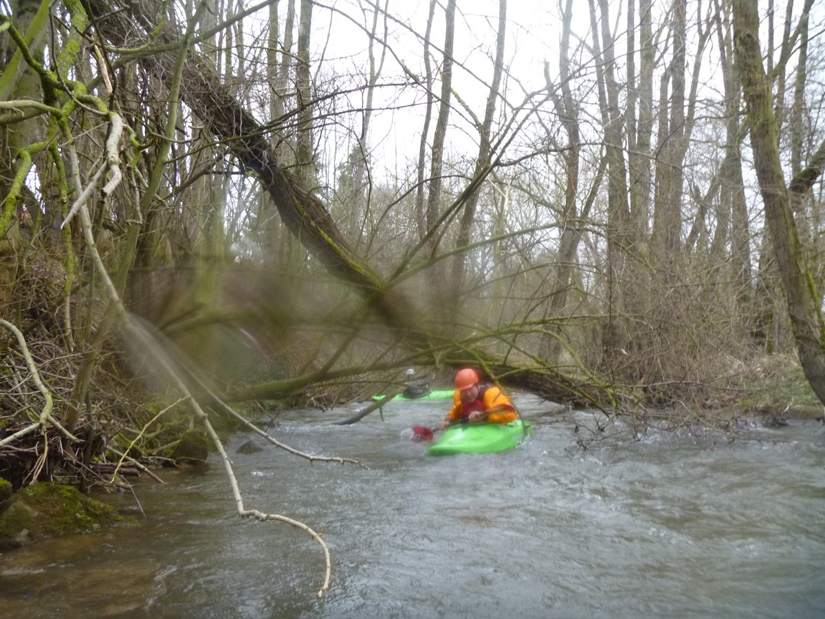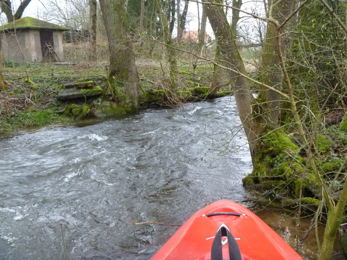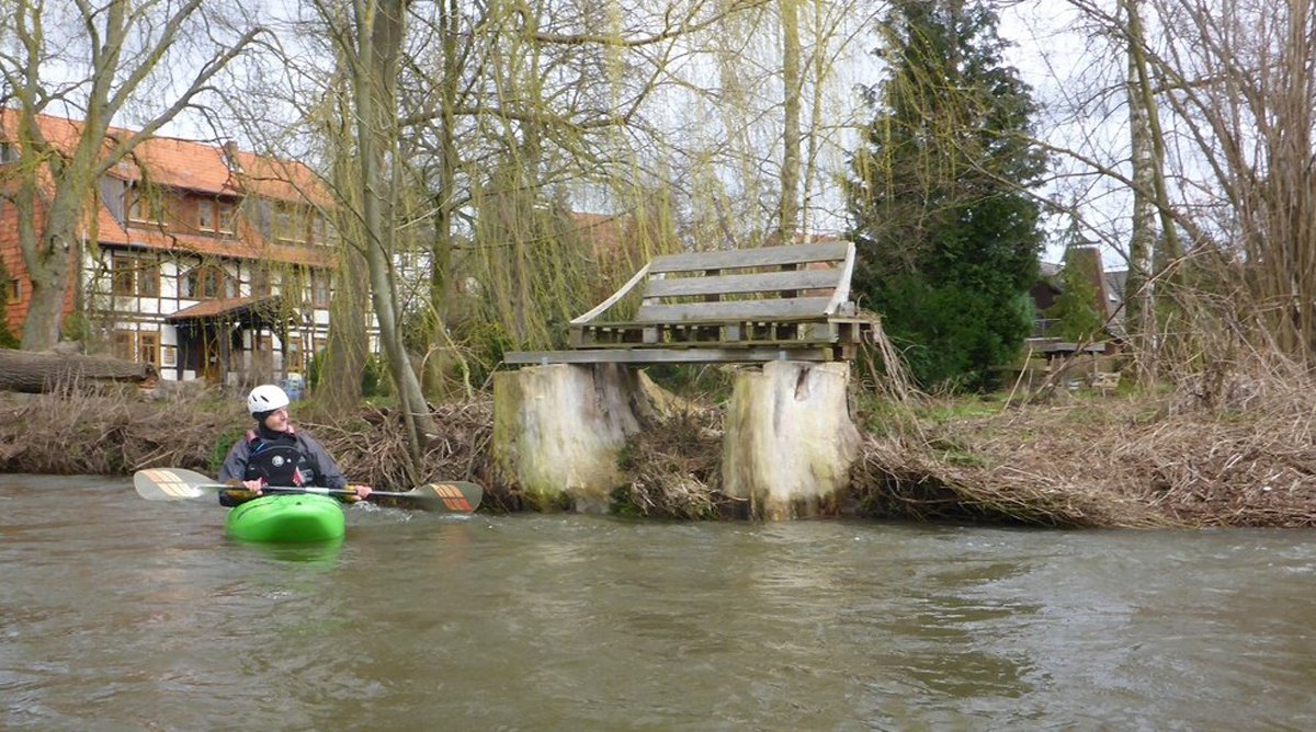 Nach der ersten Ilme-Tour waren die Wasserstände ein Wochenende später immer noch sehr gut - so gut, dass die Ilme in deutlich kleinerer Gruppe ein zweites Mal gepaddelt werden konnte und zwar von ganz oben. Der Pegel in Oldendorf lag noch bei 120 cm (ca. 8 cm weniger als in der Vorwoche). Der Start in Relliehausen ist der oberste Einsetzpunkt, der möglich ist. Gepaddelt wurde bis zum Startpunkte der zweiten Tour, bis zur Juliusmühle. Damit war die ilme dann nach längerer Zeit mal wieder komplett befahren, wenige Meter bis zur Leine ausgenommen. Unterwegs: Viele Wehre und noch mehr Baumhindernisse in zügiger Strömung.