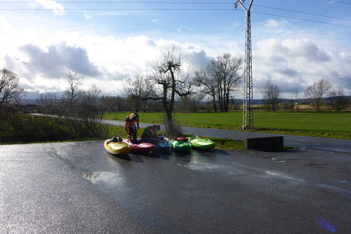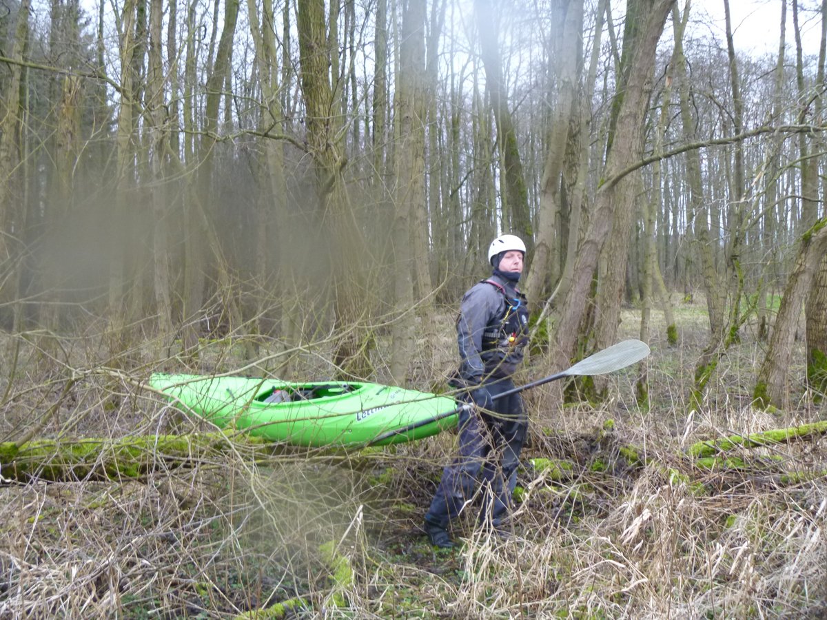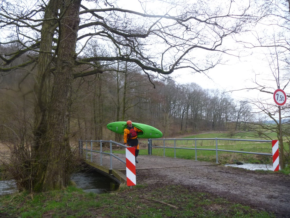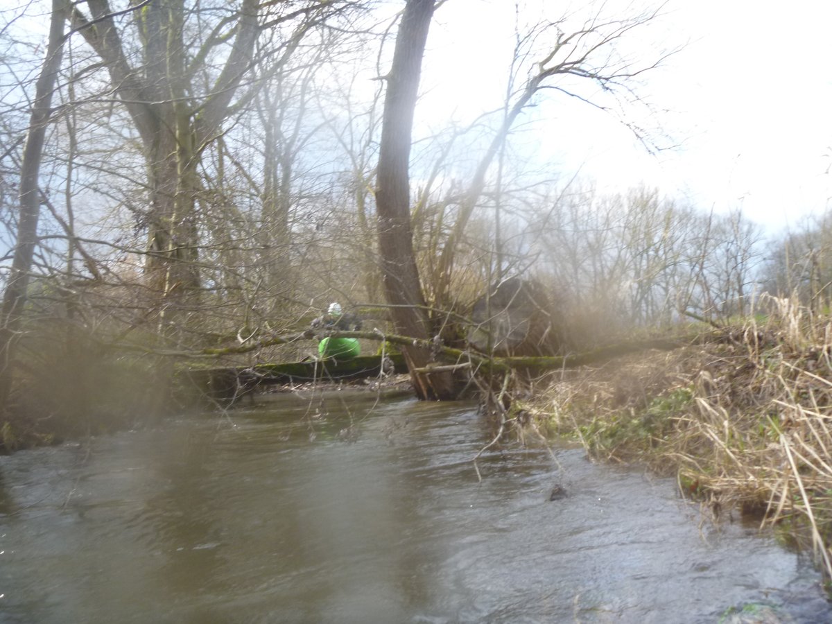 Nach der ersten Ilme-Tour waren die Wasserstände ein Wochenende später immer noch sehr gut - so gut, dass die Ilme in deutlich kleinerer Gruppe ein zweites Mal gepaddelt werden konnte und zwar von ganz oben. Der Pegel in Oldendorf lag noch bei 120 cm (ca. 8 cm weniger als in der Vorwoche). Der Start in Relliehausen ist der oberste Einsetzpunkt, der möglich ist. Gepaddelt wurde bis zum Startpunkte der zweiten Tour, bis zur Juliusmühle. Damit war die ilme dann nach längerer Zeit mal wieder komplett befahren, wenige Meter bis zur Leine ausgenommen. Unterwegs: Viele Wehre und noch mehr Baumhindernisse in zügiger Strömung.