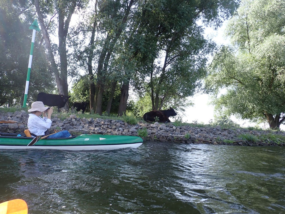Die Tour am ersten Tag startete am Trebelsee und führte dann auf der Havel westwärts nach Brandenburg. Dieser Abschnitt, der bereits zur unteren havel gehört, hat neben dem hauptstrom zahlreiche Nebenarme, den einen oder anderen konnten wir erkunden. Ist auf dem Hauptarm ein reger Freizeitmotorbootverkehr, ist den in den Nebenarmen ruhig. Besonders hat uns die Krumme Havel gefallen. In Brandenburg gibt es nur eine Umtragestelle, dann geht es durch den Ort auf dem Fluss zu unserem Quartier.
