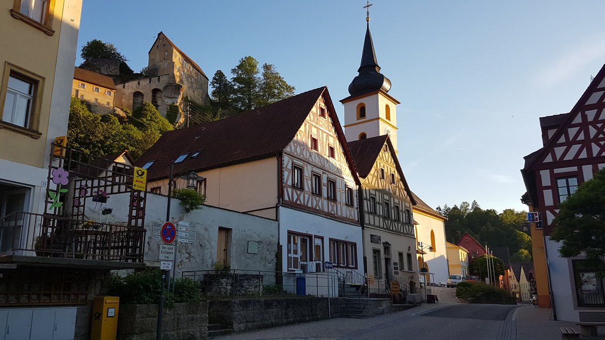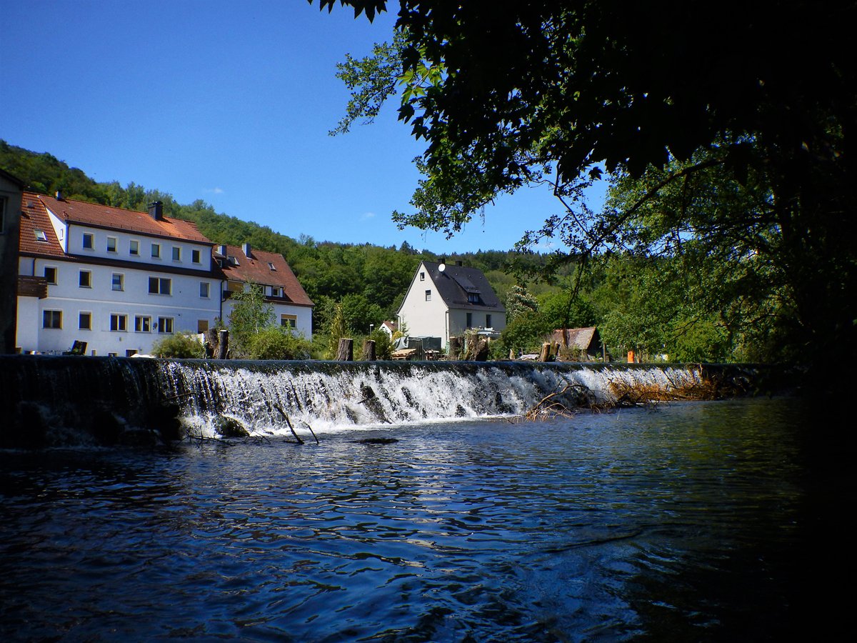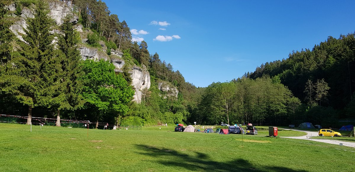 Oberer Main, Campingplatz Bärenschlucht, nähere Umgebung: Die letzte Tour schließlich führte uns auf den oberen Main. Geeignete Ein- und Aussetzstellen zu finden, war nicht ganz einfach, da die Beschreibung trotz Gewässerführer und ausgewiesenem "Flussparadies Oberfranken" nicht unbedingt mit den örtlichen Gegebenheiten korrespondierte - oder Ufer einfach so steil oder zugewachsen waren, dass man an vorgesehenen Stellen nicht zu Gewässer kam. Nach spontaner Routenänderung konnten wir aber schließlich auf dem Oberen Main paddeln. Einige weitere Bilder hier stammen vom Campingplatz Bärenschlucht und der näheren Umgebung rund und um den Platz. Ganz tief in der Fränkischen Schweiz.