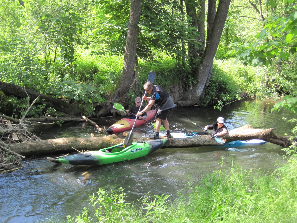 Pegnitz: Unsere erste Tour führte uns schon fast wieder aus der Fränkischen Schweiz hinaus. Gleich um die Ecke liegt die Pegnitz, die wir gerade so noch bei Mindestpegel von Günthersthal bis Hohenstedt paddeln konnten.