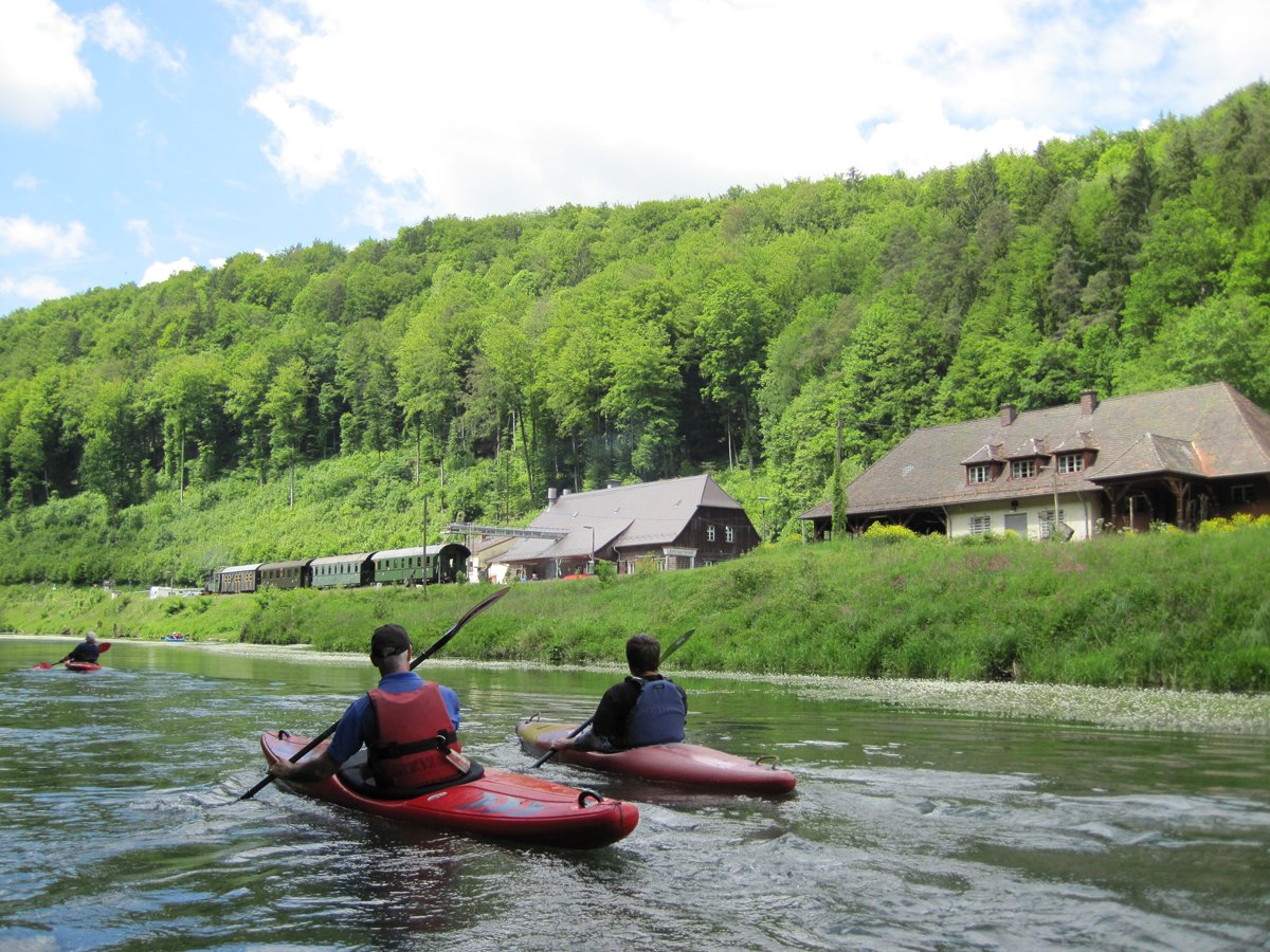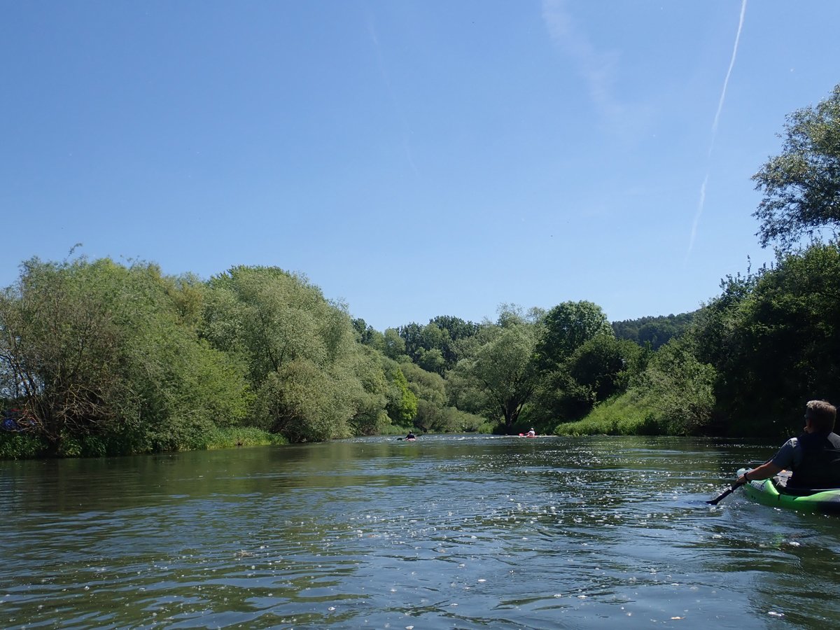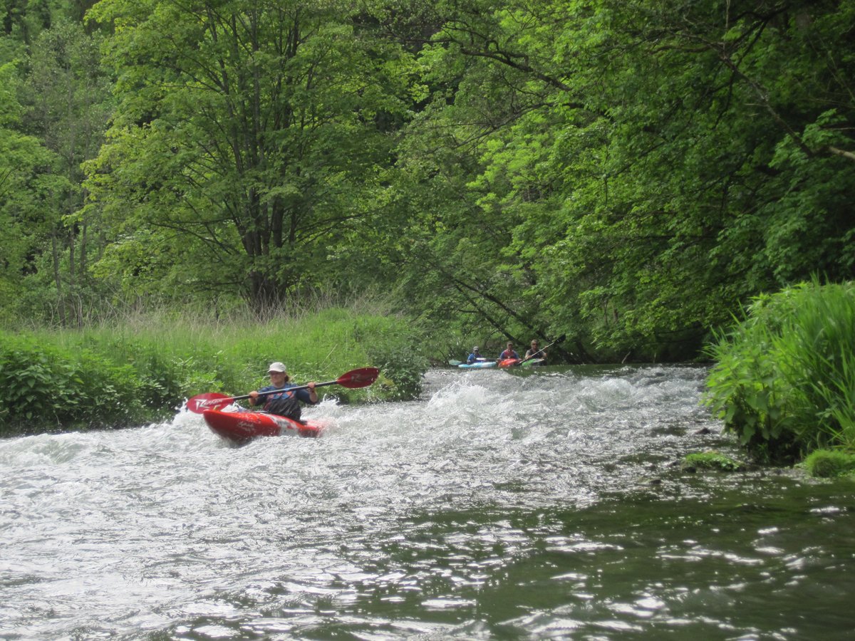 Wiesent: Unsere zweite Tour war dann ganz in der Nähe - die Wiesent ist der einzige für den Kanusport freigegebene Fluss in der Fränkischen Schweiz. Wir sind die Hauptstrecke von Doos bis Streitberg und dann eine kleine Verlängerung bis Ebermannstadt gepaddelt. Die Wiesent ist auf einigen Teilstrecken leichtes Wildwasser I.