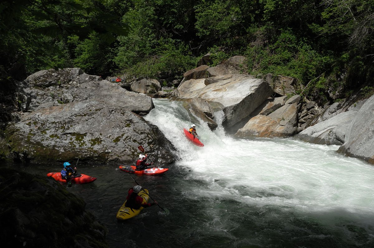 Die Wildwasser-Tour in den Tessin / Piemont sollte mal etwas ganz anderes werden. Und das war in erster Linie von mehreren Faktoren bestimmt: Es sollte nicht nur ein erstklassiger Wildwasser-Urlaub werden, sondern auch ein Traning, dass einen an eigene Grenzen führte und vielleicht auch mal darüber hinaus. Schon bei der Eingangsvoraussetzung dürfte der eine oder andere zucken: Sicheres Fahren von Wildwasser IV ist angesagt. In dieser kleinen PKH-Gruppe buchte man nun einen Privatkurs bei der renommierten Wildwasser-Schule von Bernhard Steidl - Source2Sea. Und dann schulte der Chef persönlich.