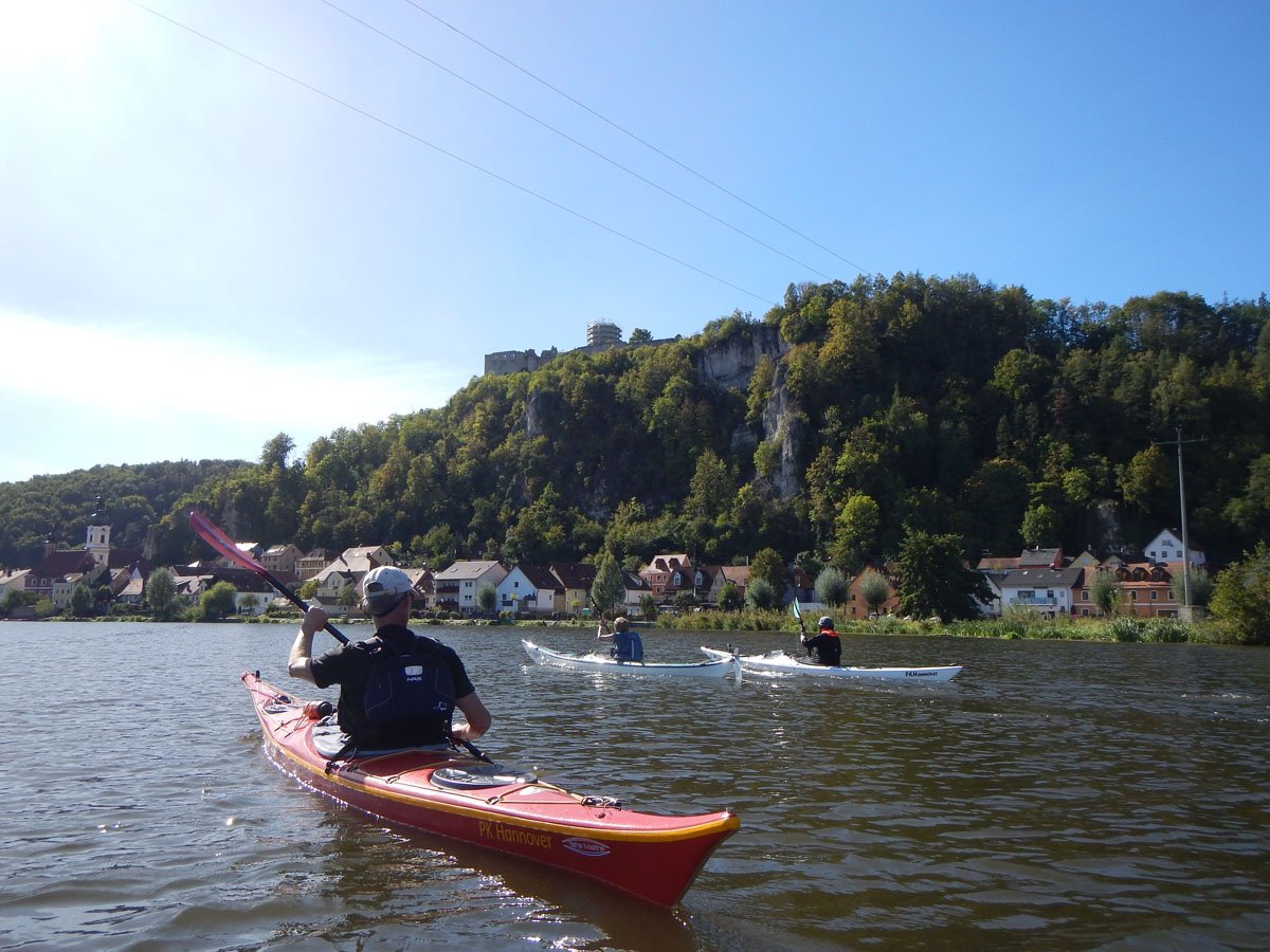 Naab: Diese Tour war die erste von vier Fahrten. Es ging auf der Naab von Münchshofen bis Pielenhofen statt. Es gab vier Wehre: Burglengenfeld (lange mit Bootswagen umtragen), Schirndorfer Mühle (sportlich auf undefinierbaren Wegen umklettern), Kallmünz (verbraucherfreundlich mit Treppen und kurzen Wegen) und Heitzenhofen (noch kürzerer Weg). Landschaftlich gab es viel zu sehen. Trotz Niedrigwasser ist die Naab kein tiefer Graben.